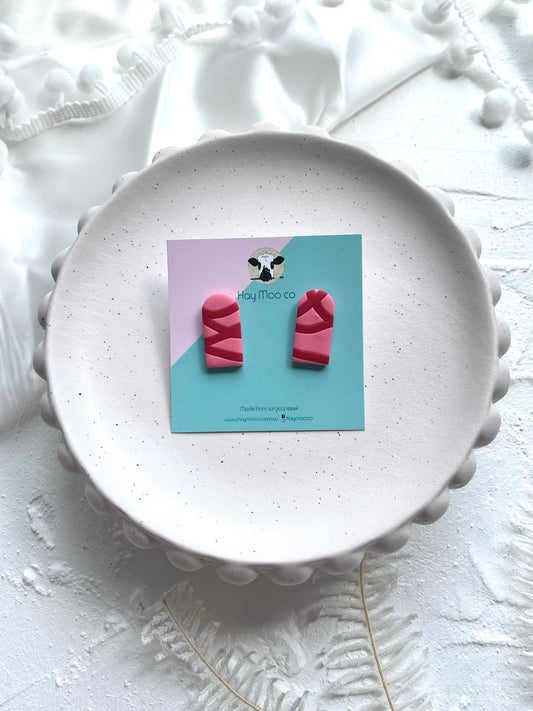 *CLIP ON* Pink Stripe Pebble Stud