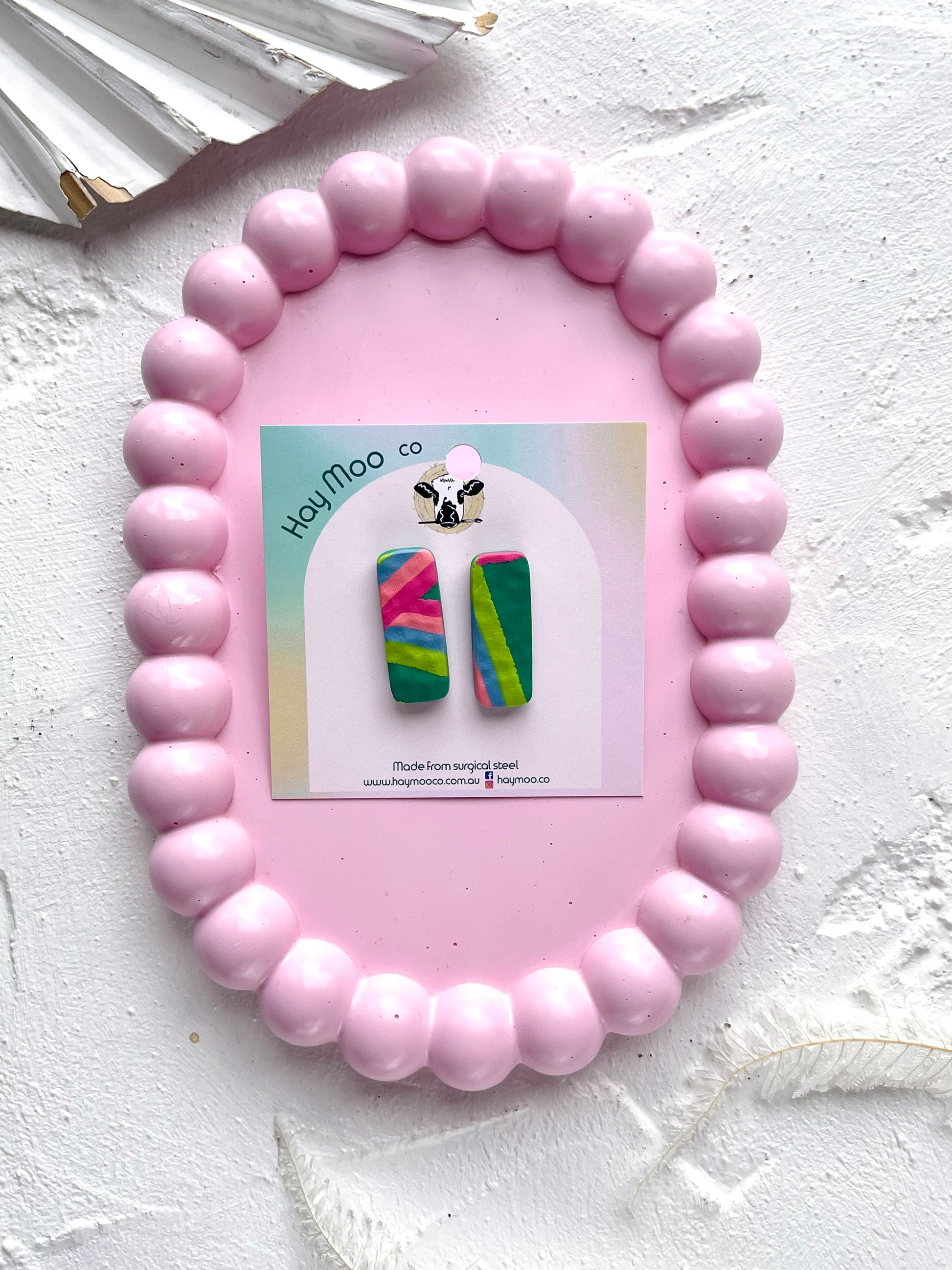 Handmade polymer clay earrings from the 'Aqua Bloom' range.