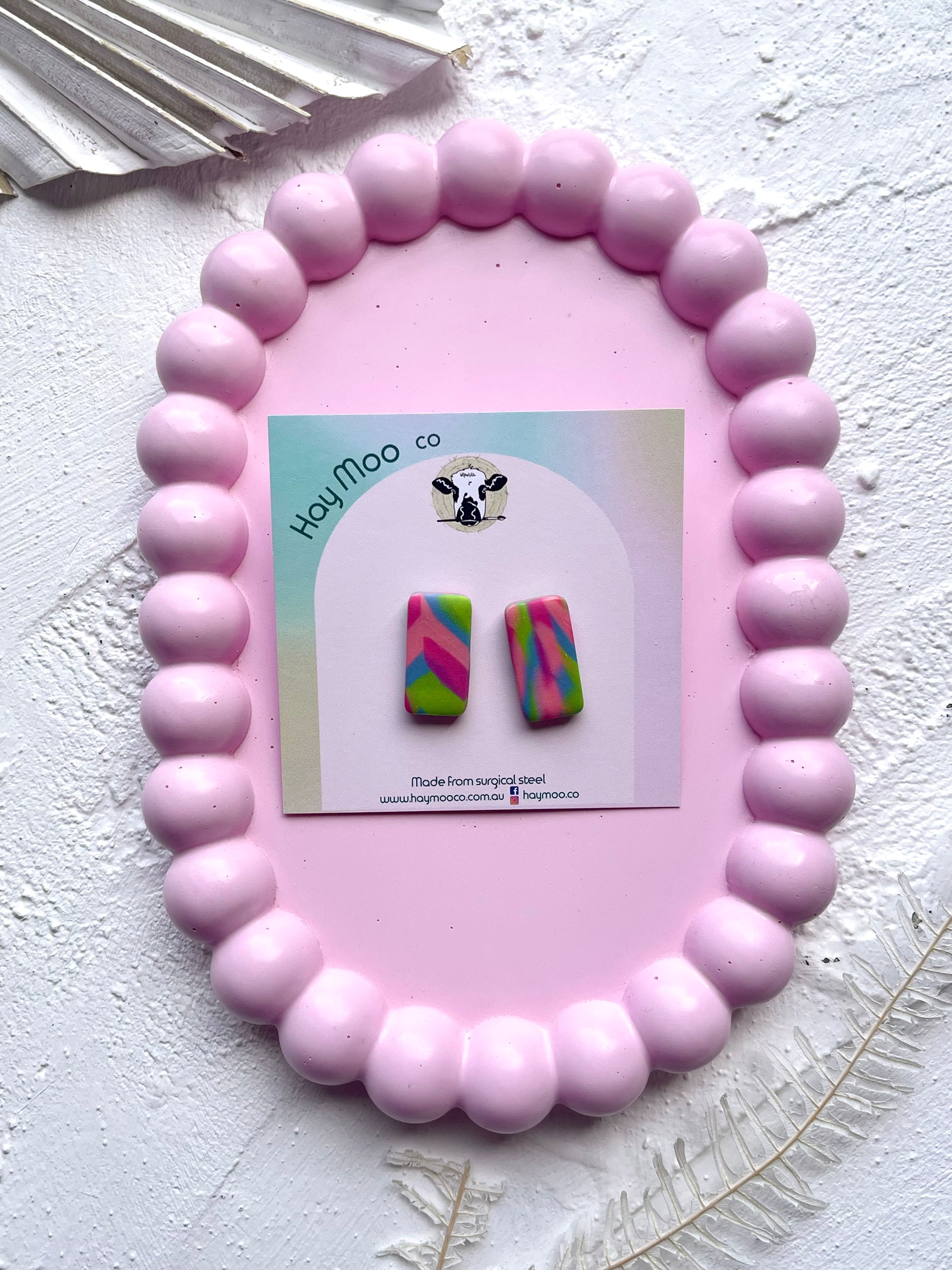 Handmade polymer clay earrings from the 'Aqua Bloom' range.