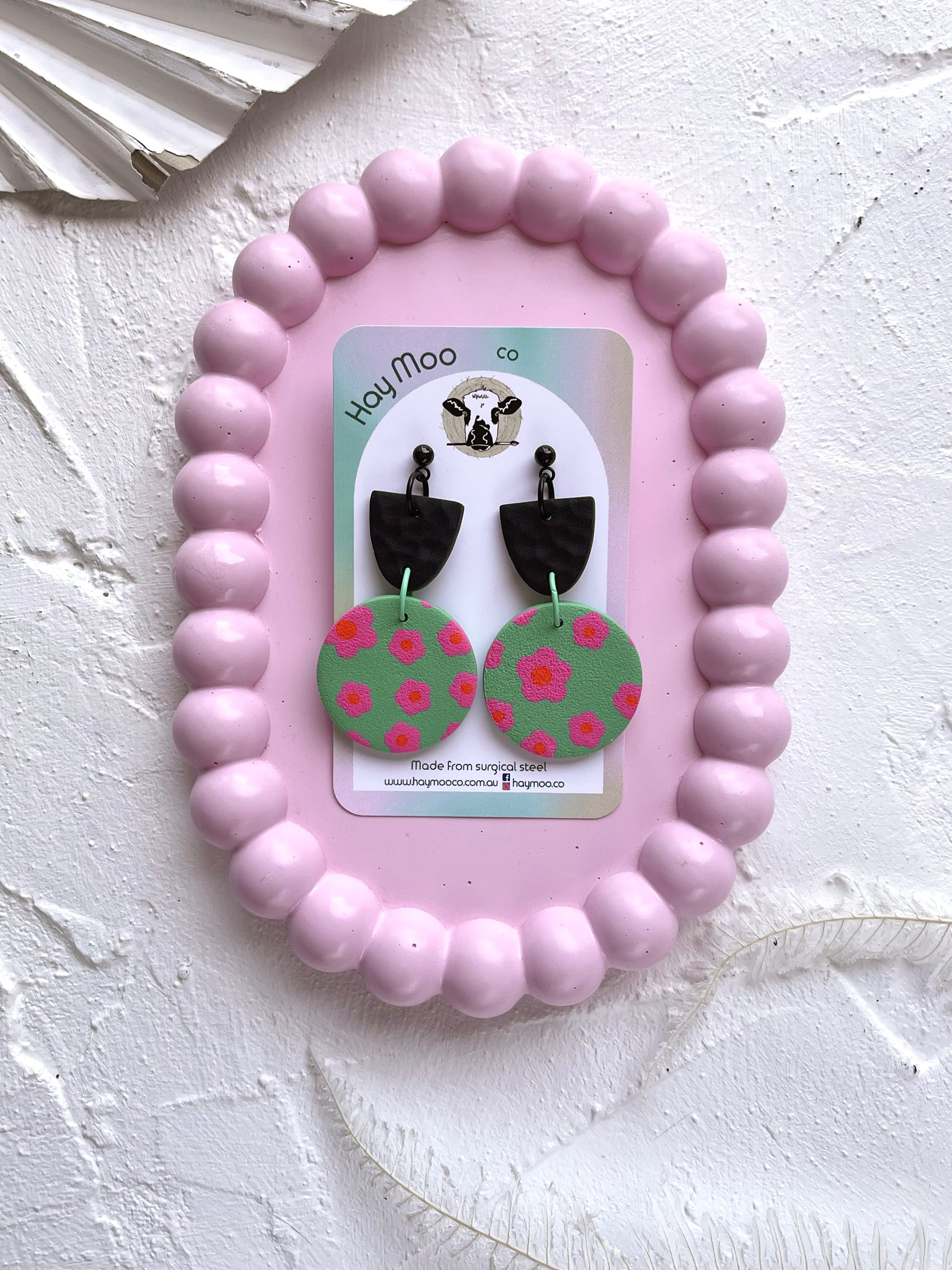 Handmade polymer clay earrings from the 'Pink Petals' range.