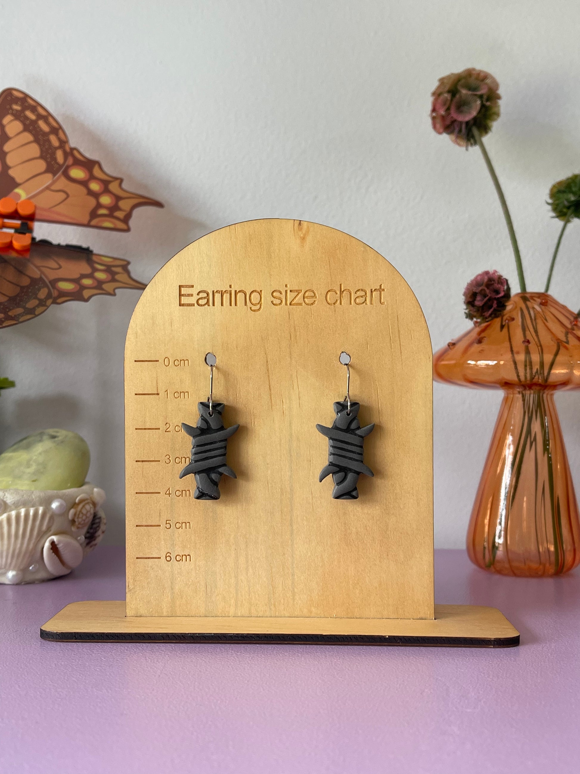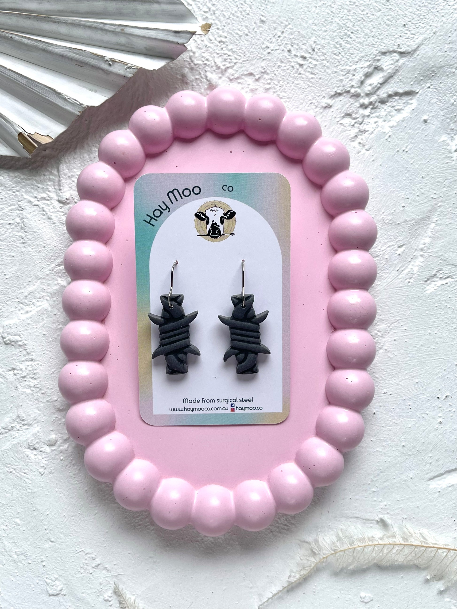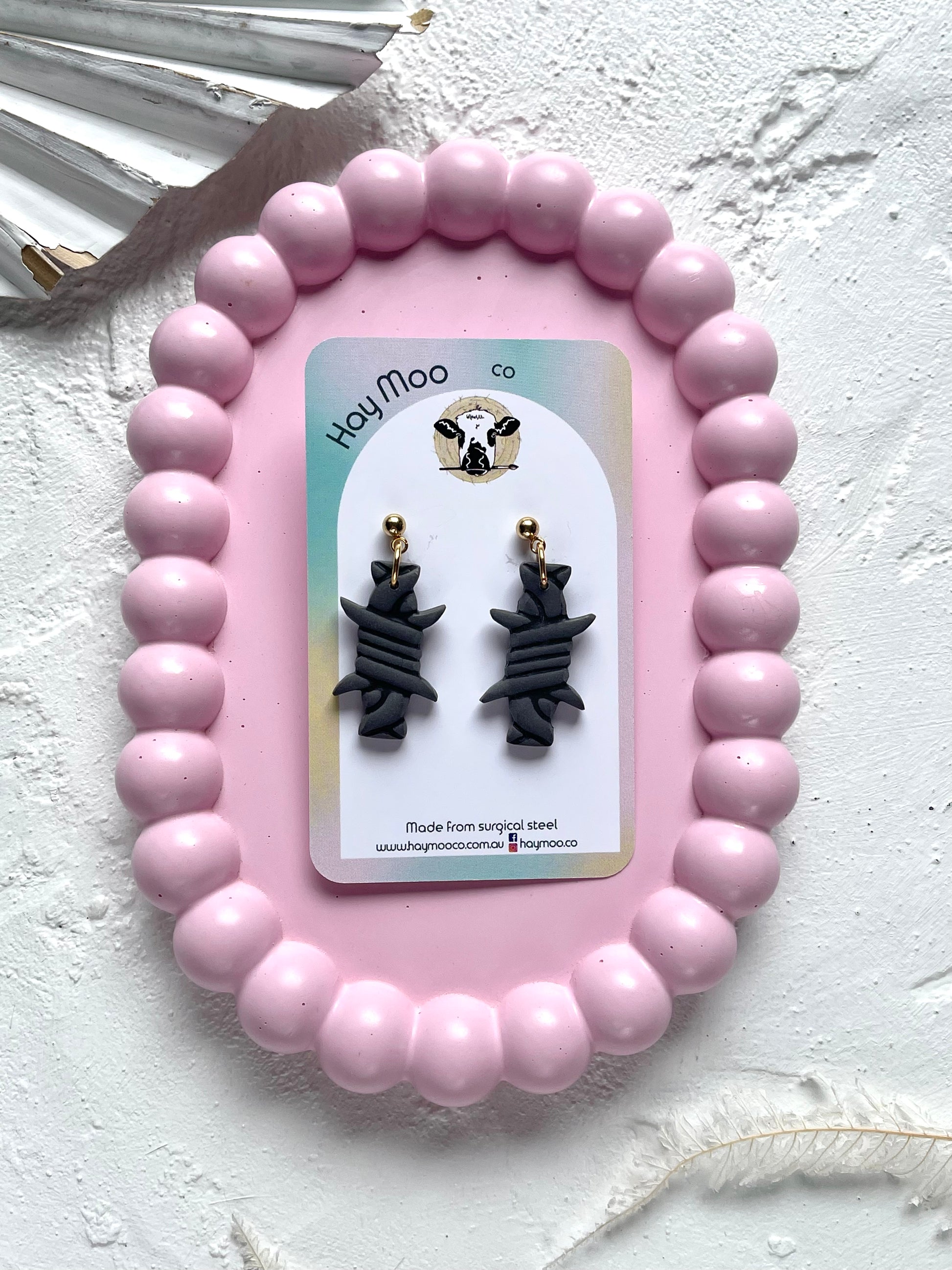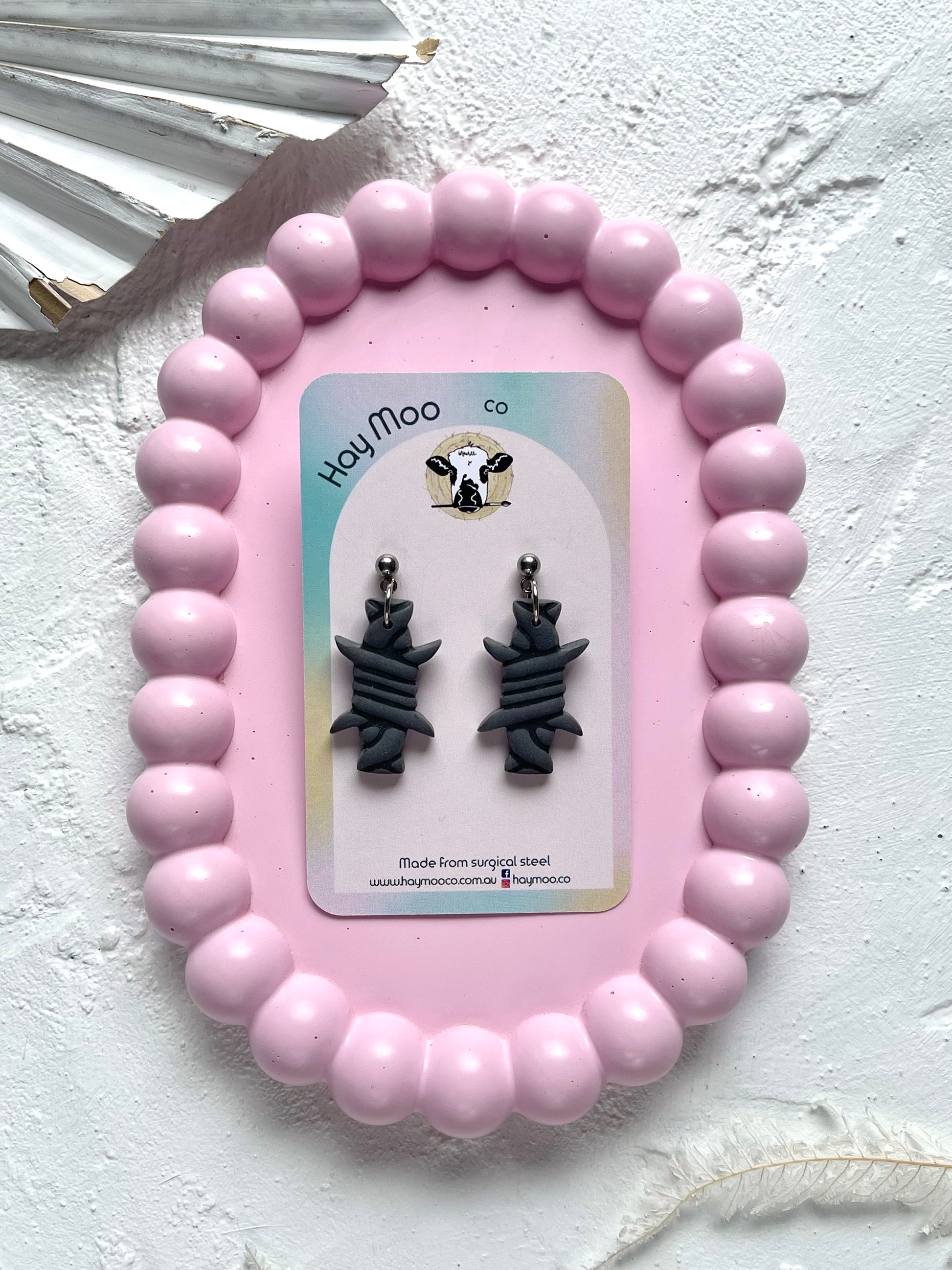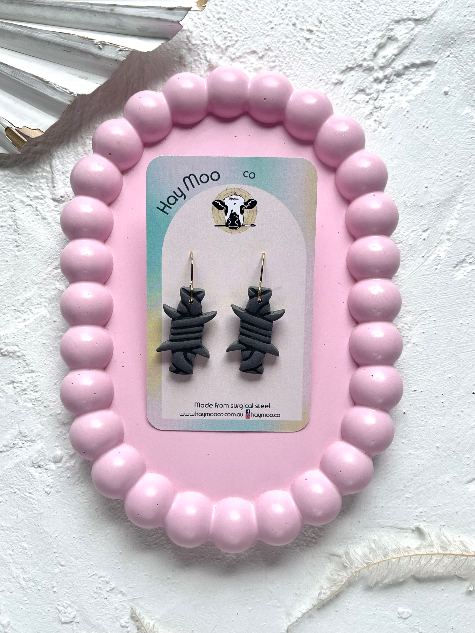 Handmade polymer clay earrings from the 'Barbed Wire' range.
