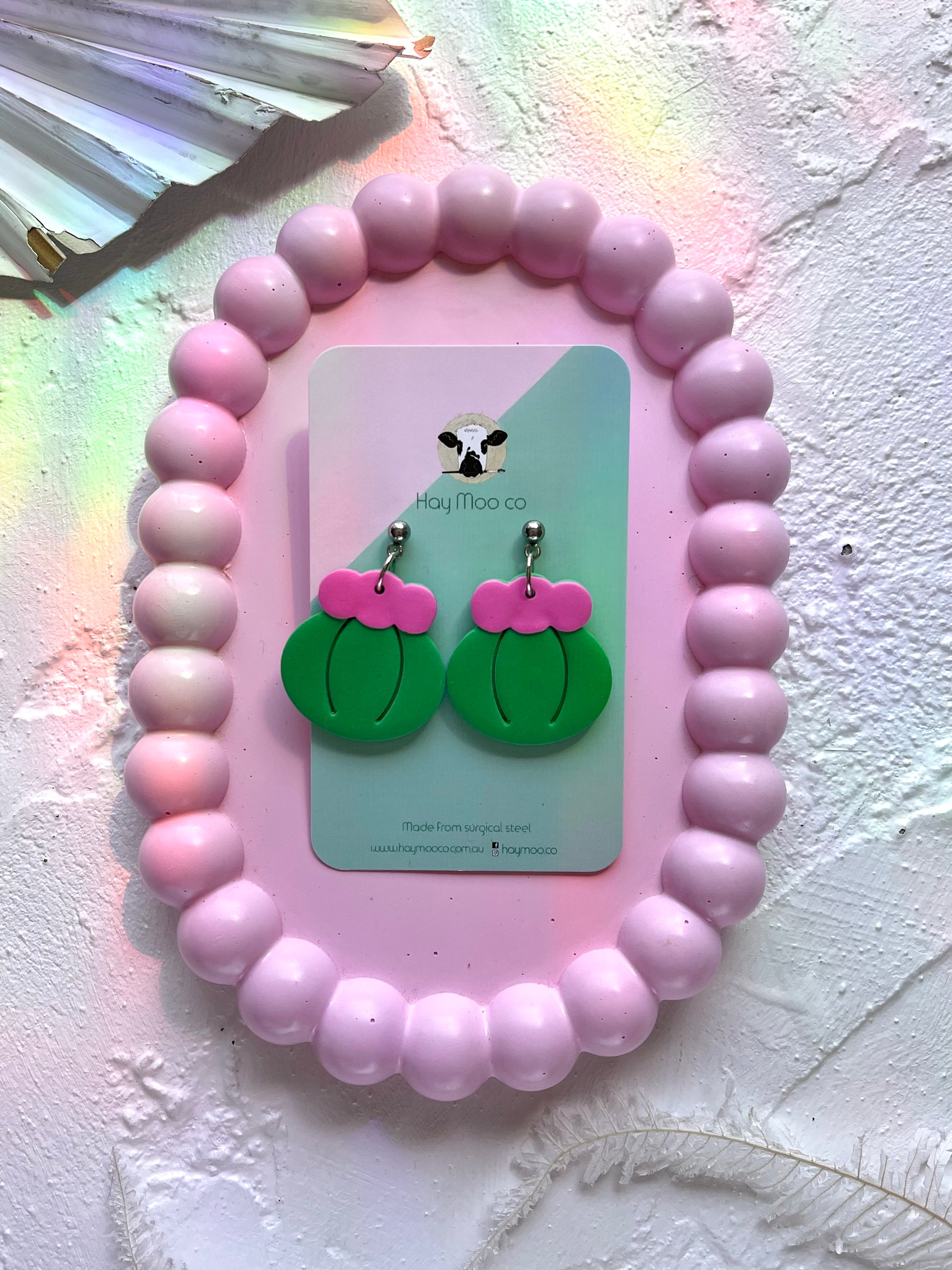 Handmade polymer clay earrings from the 'Barrel Cactus' range.