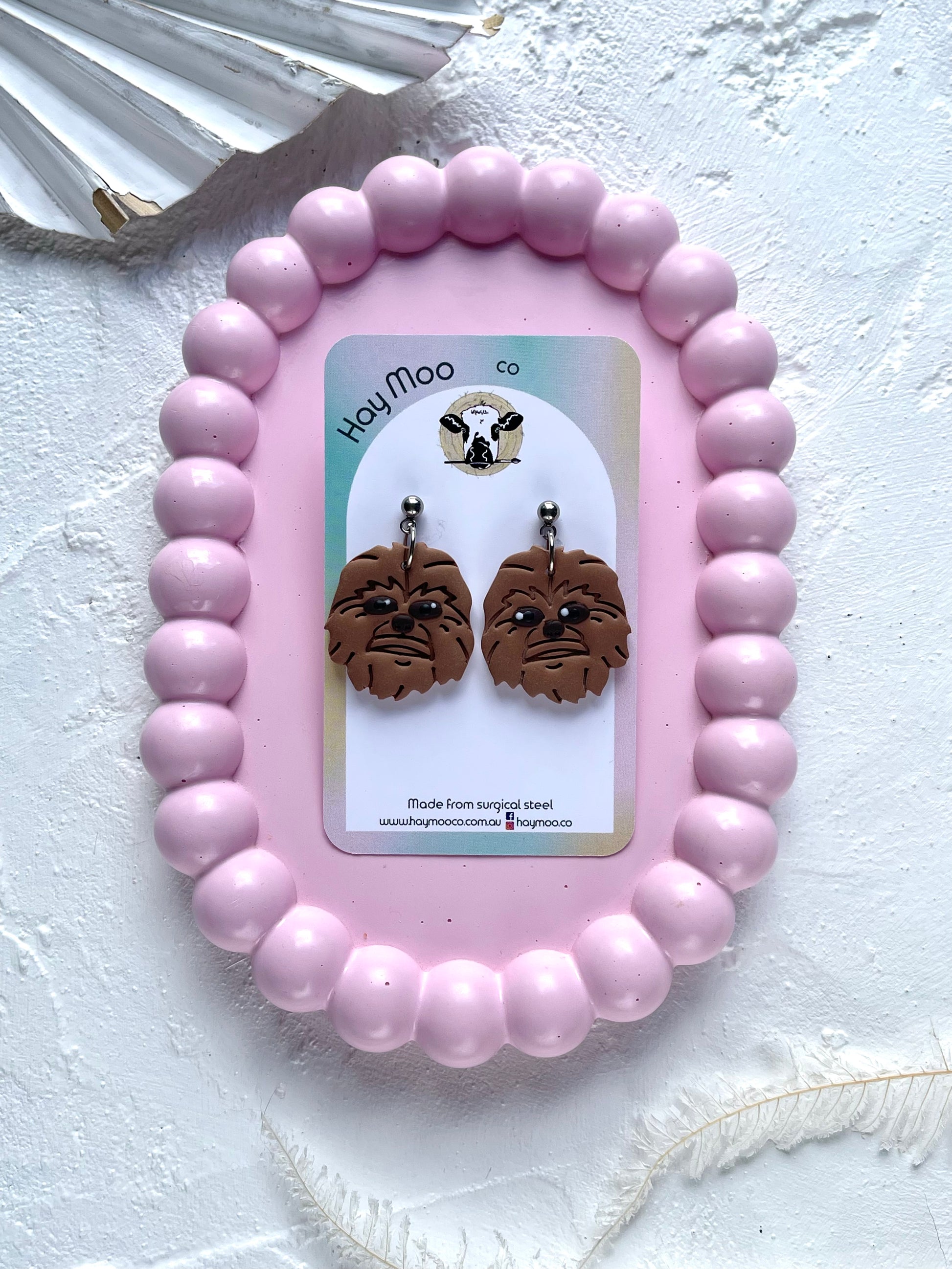 Handmade polymer clay earrings from the 'Chewbacca' range.