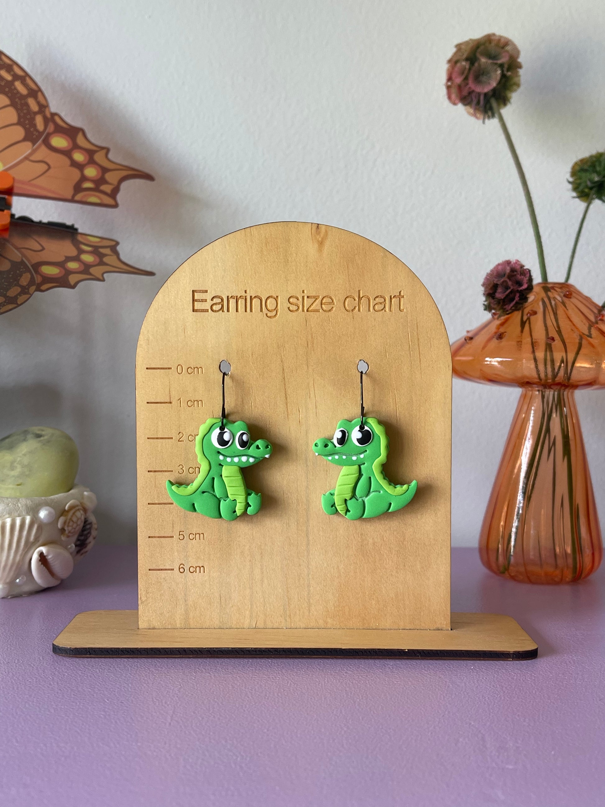 Handmade polymer clay earrings from the 'Crocodile' range.