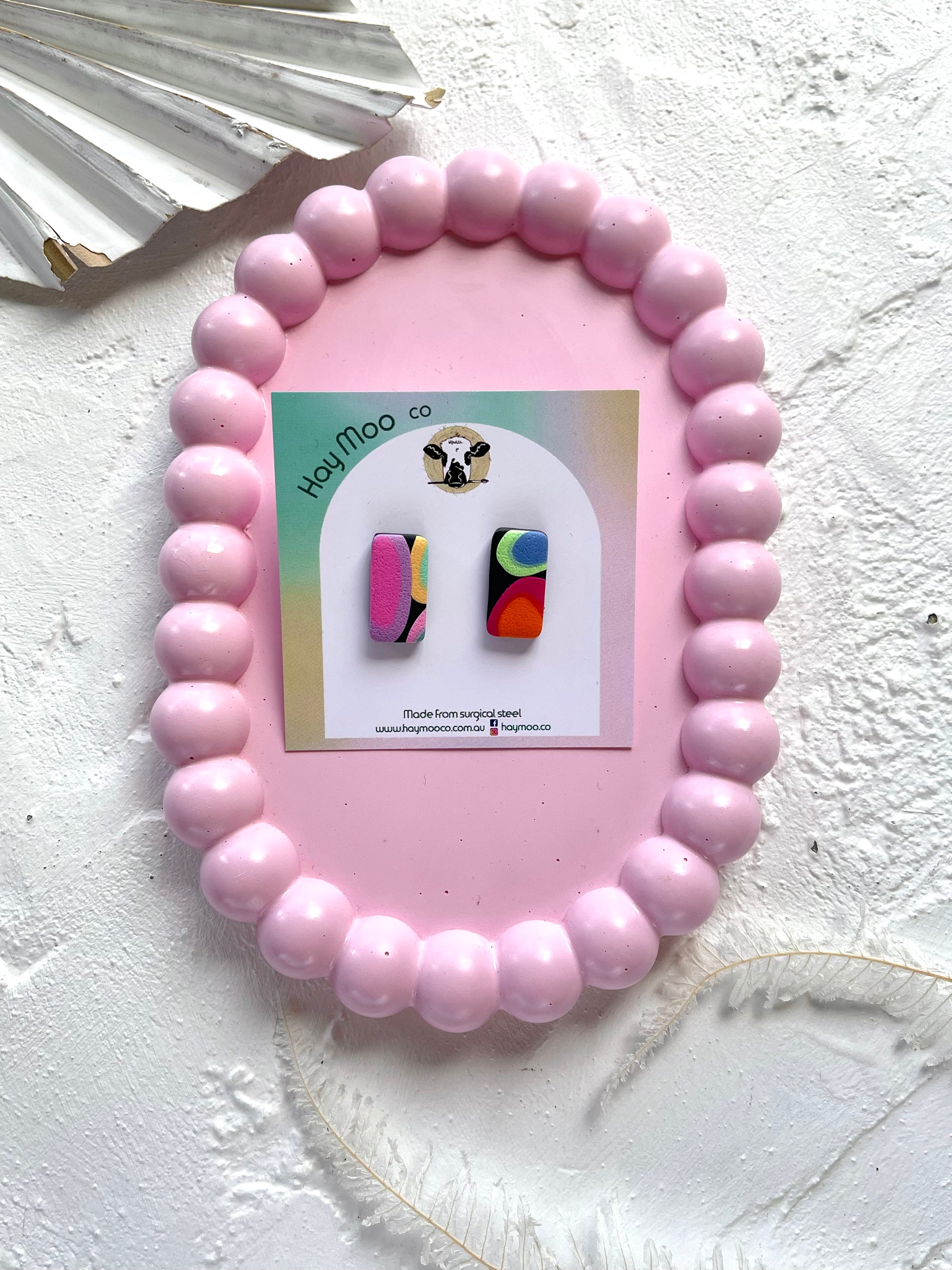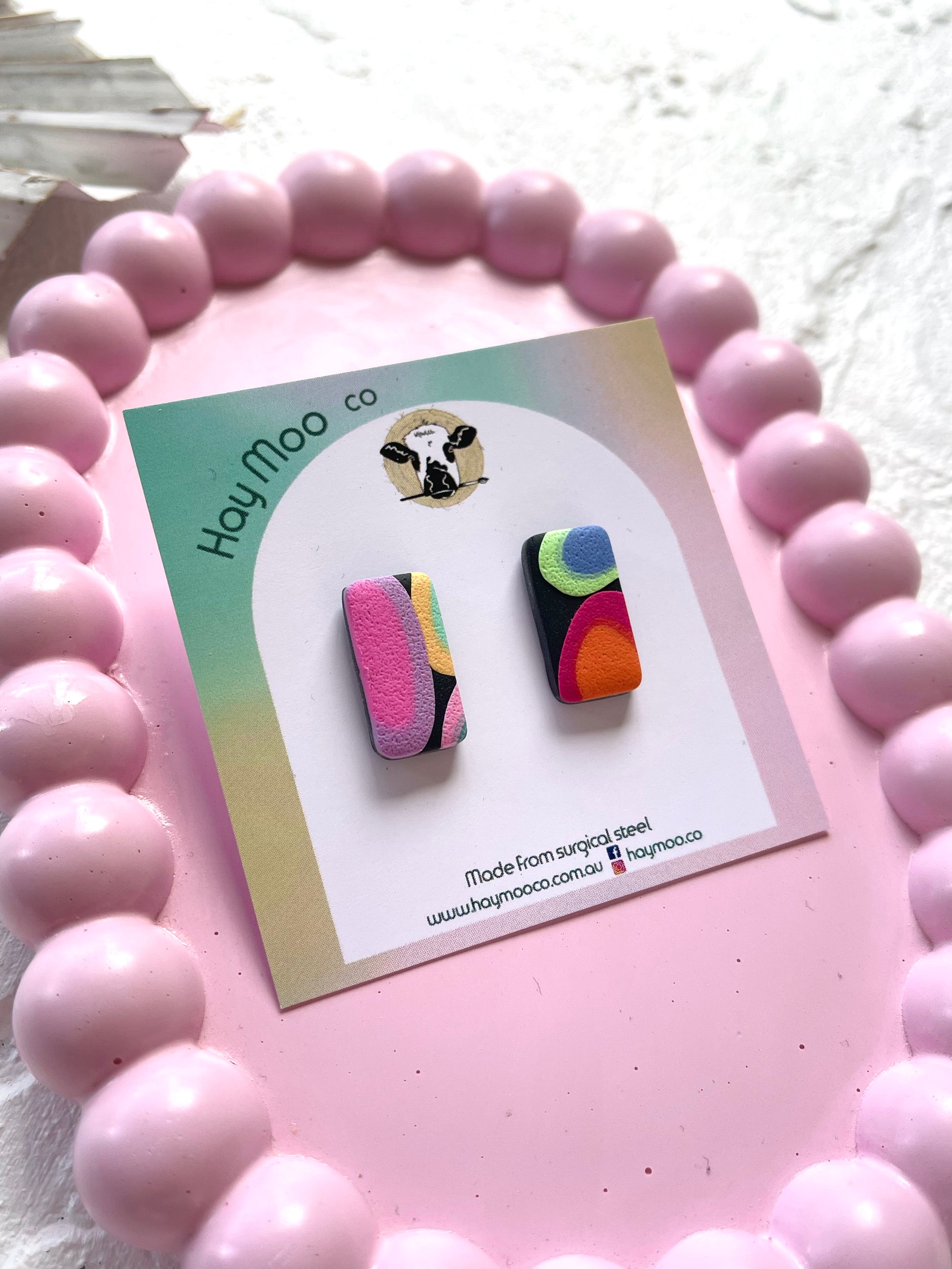Handmade polymer clay earrings from the 'Dark Colour Pop' range.