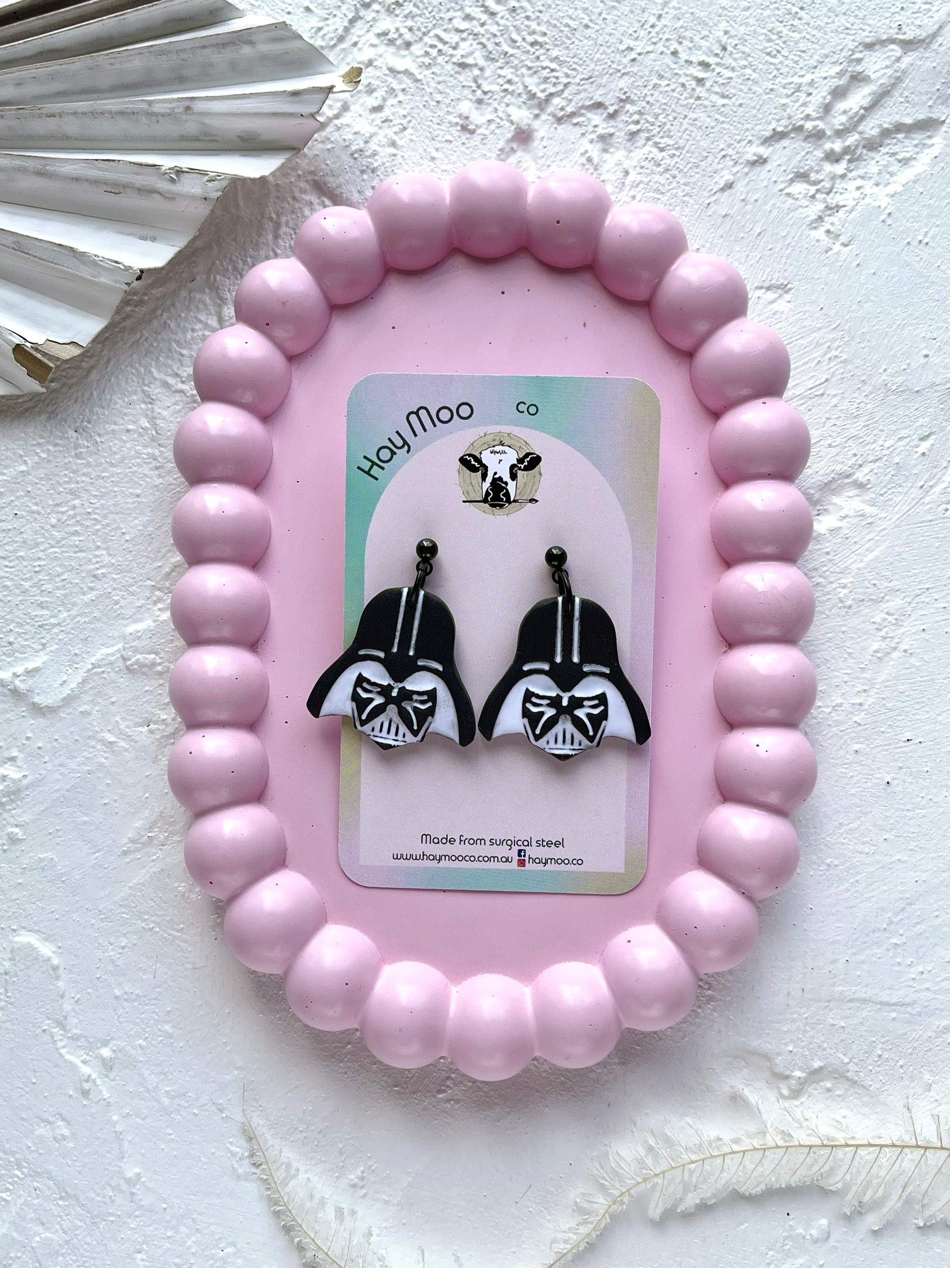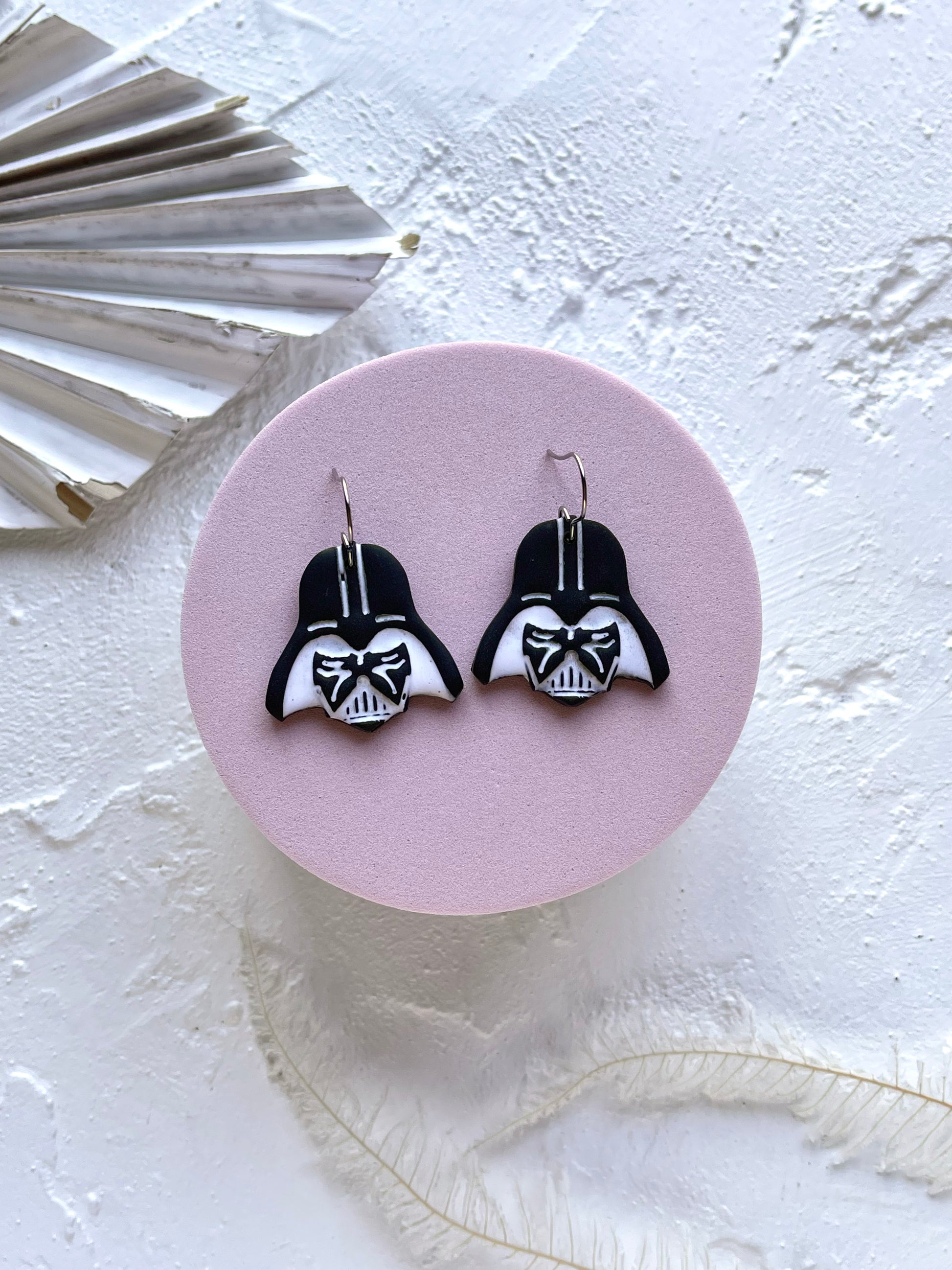 Handmade polymer clay earrings from the 'Darth Vader' range.