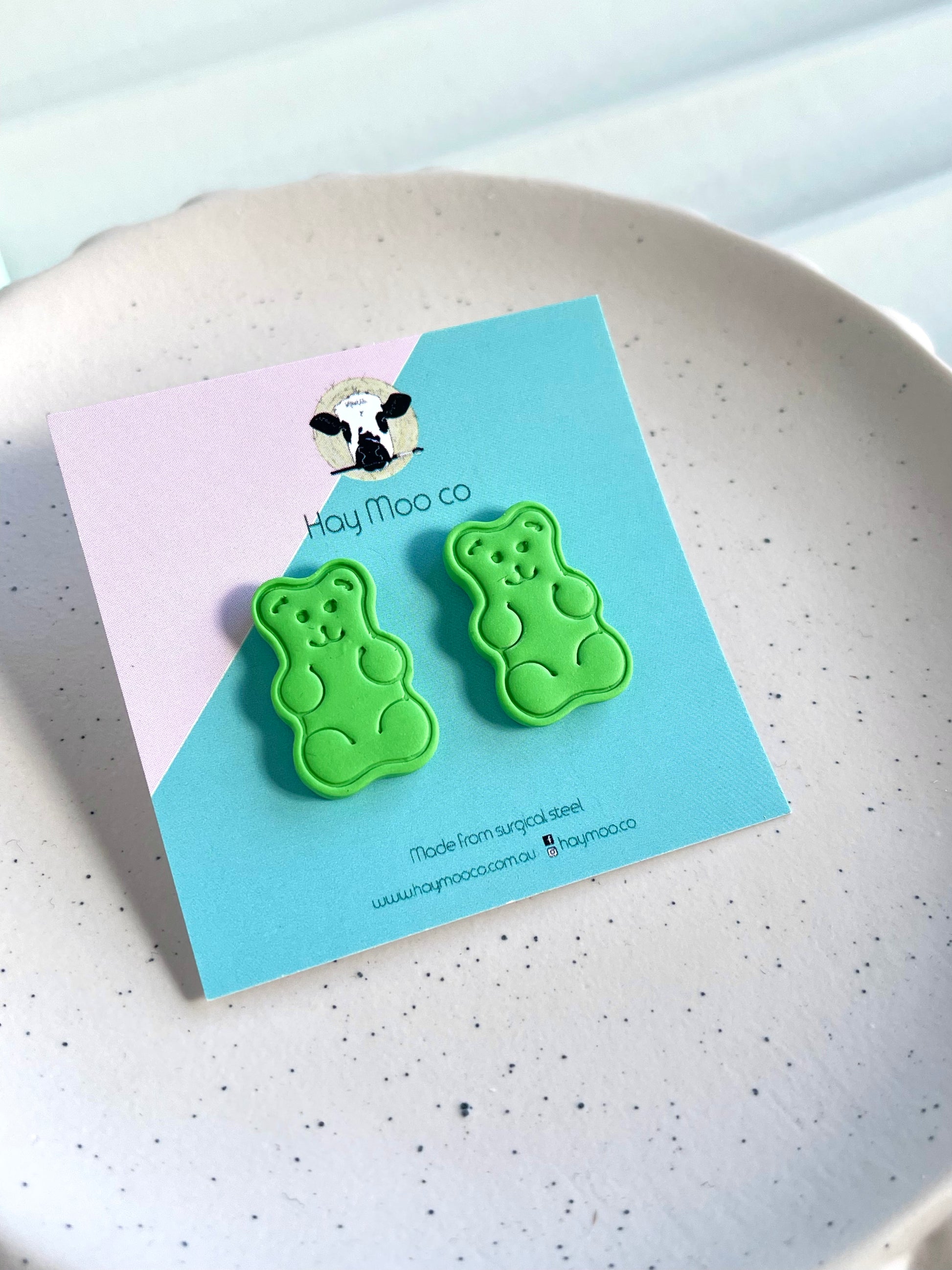 Handmade polymer clay earrings from the 'Gummy Bears' range.