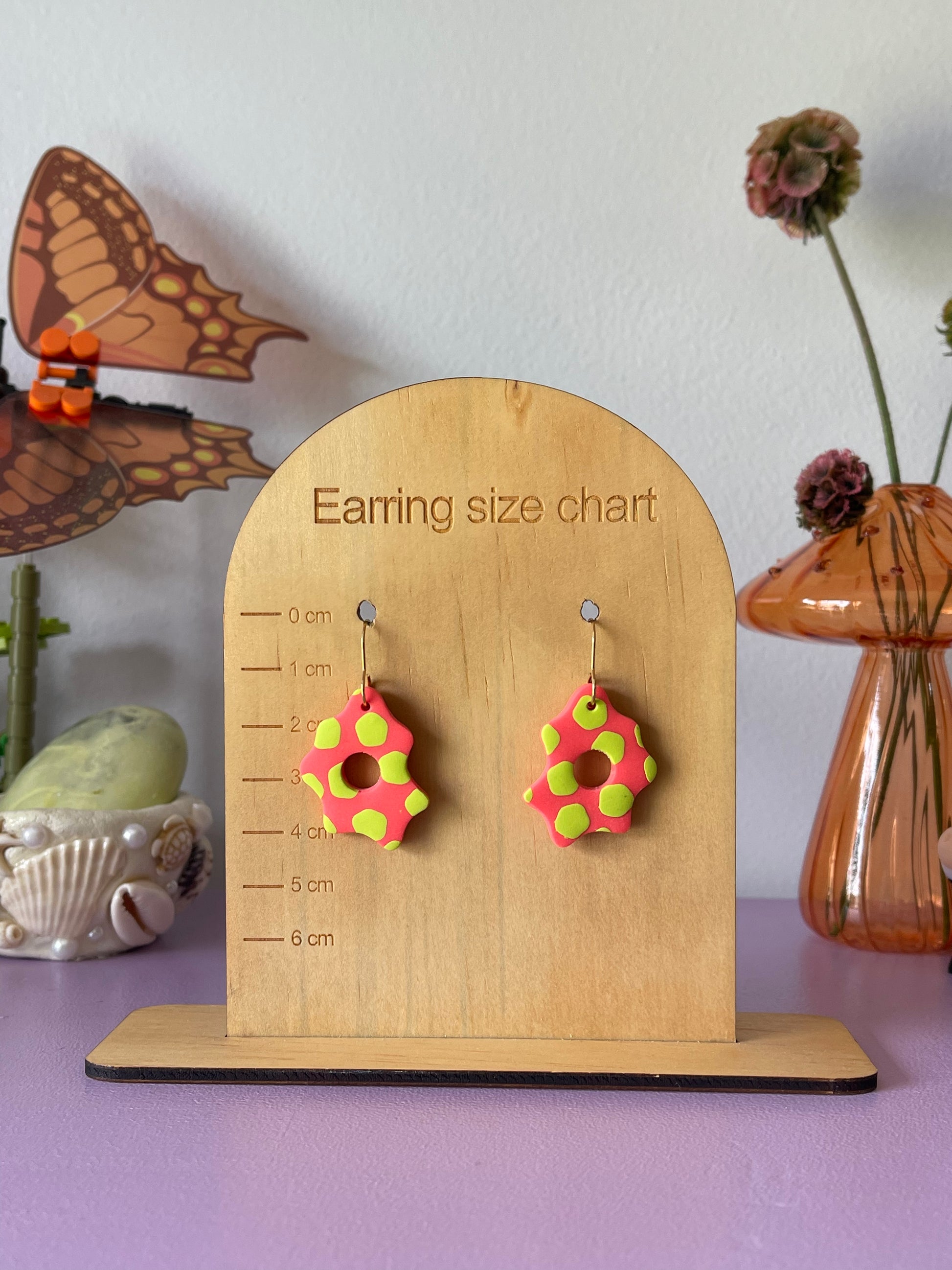 Handmade polymer clay earrings from the 'Lime Burst' range.