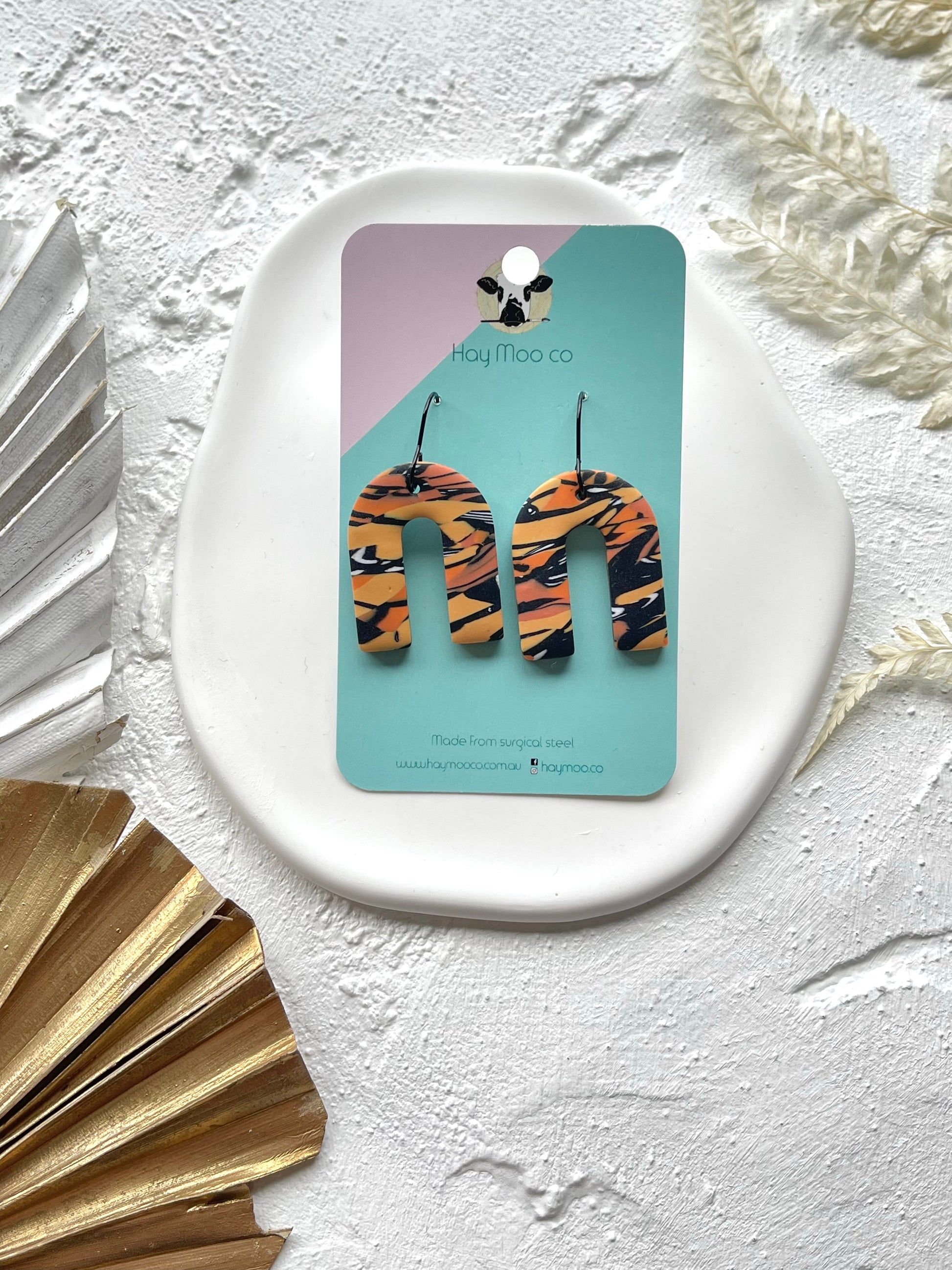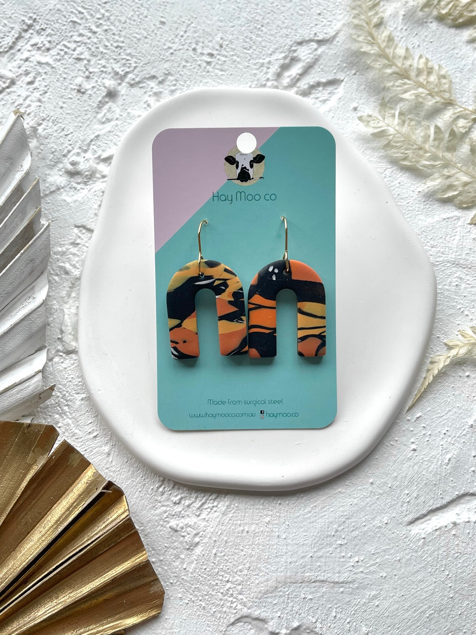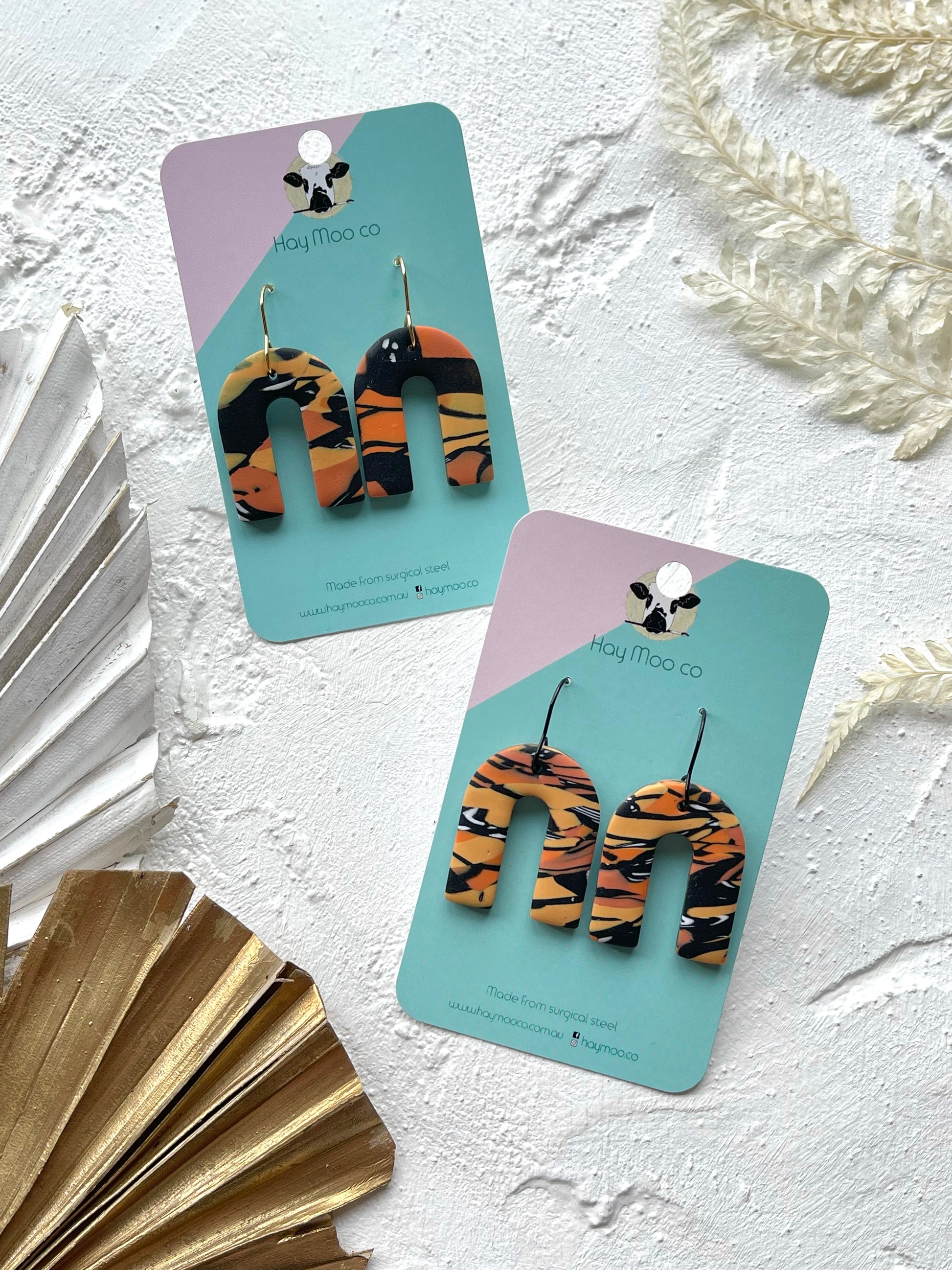 Handmade polymer clay earrings from the 'Monarch' range.