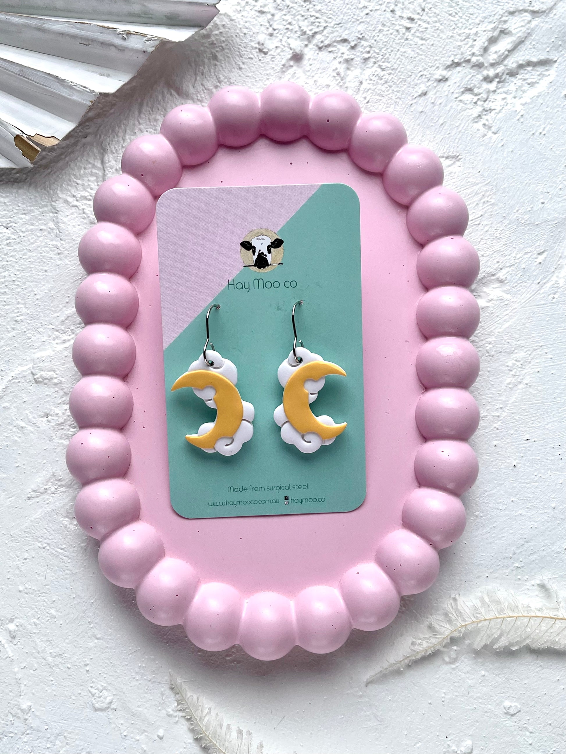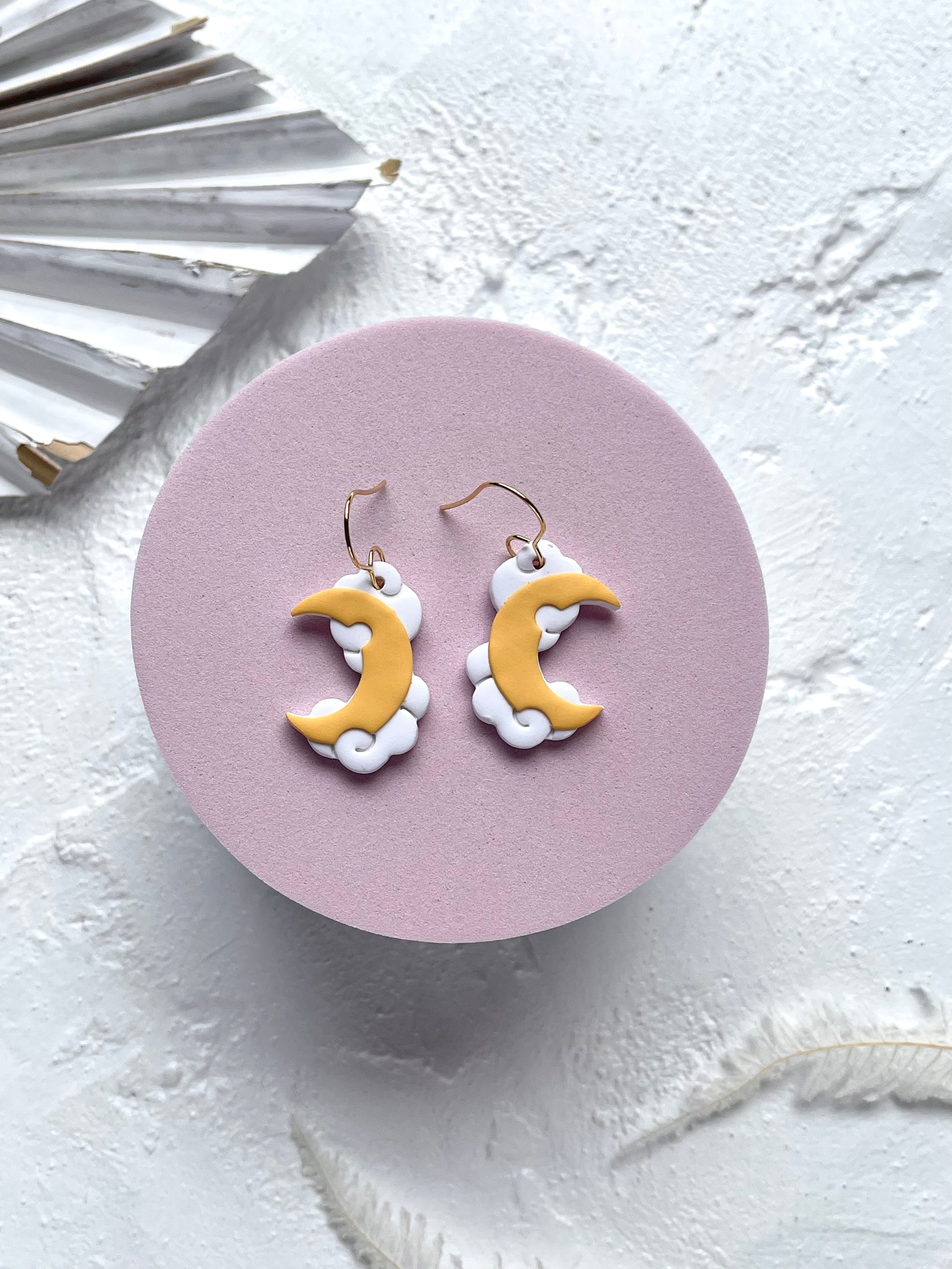 Handmade polymer clay earrings from the 'Moon Cloud' range.