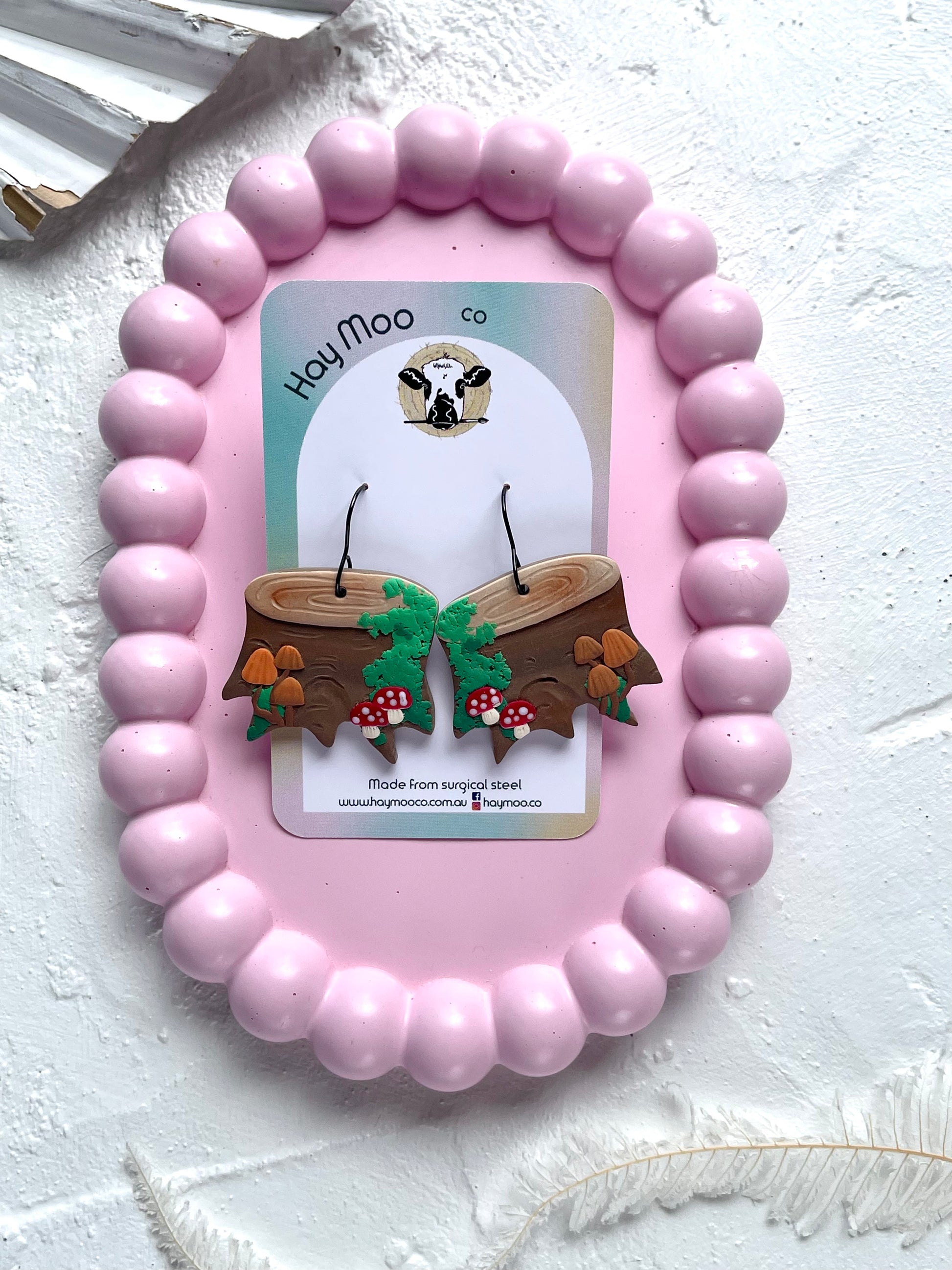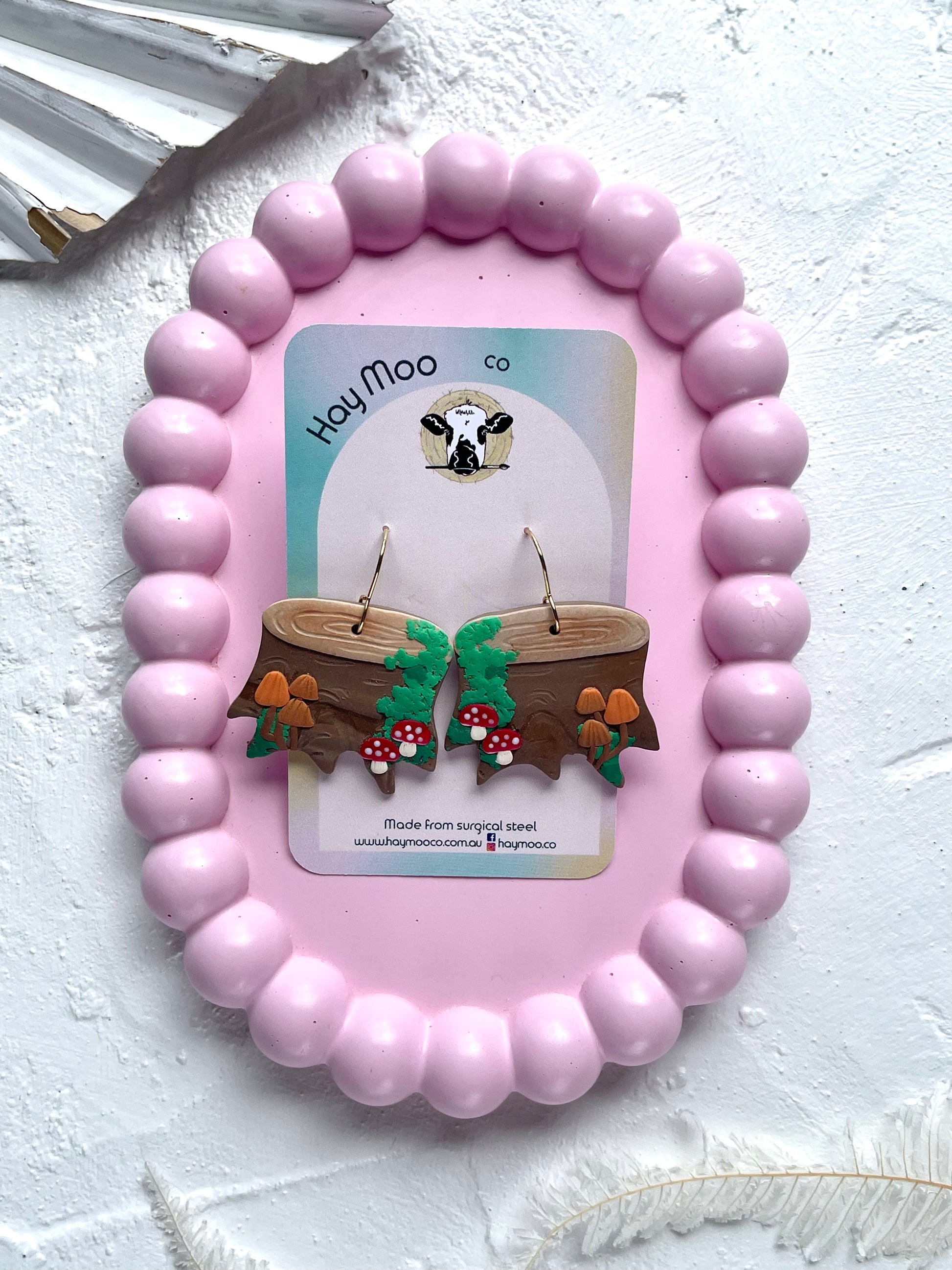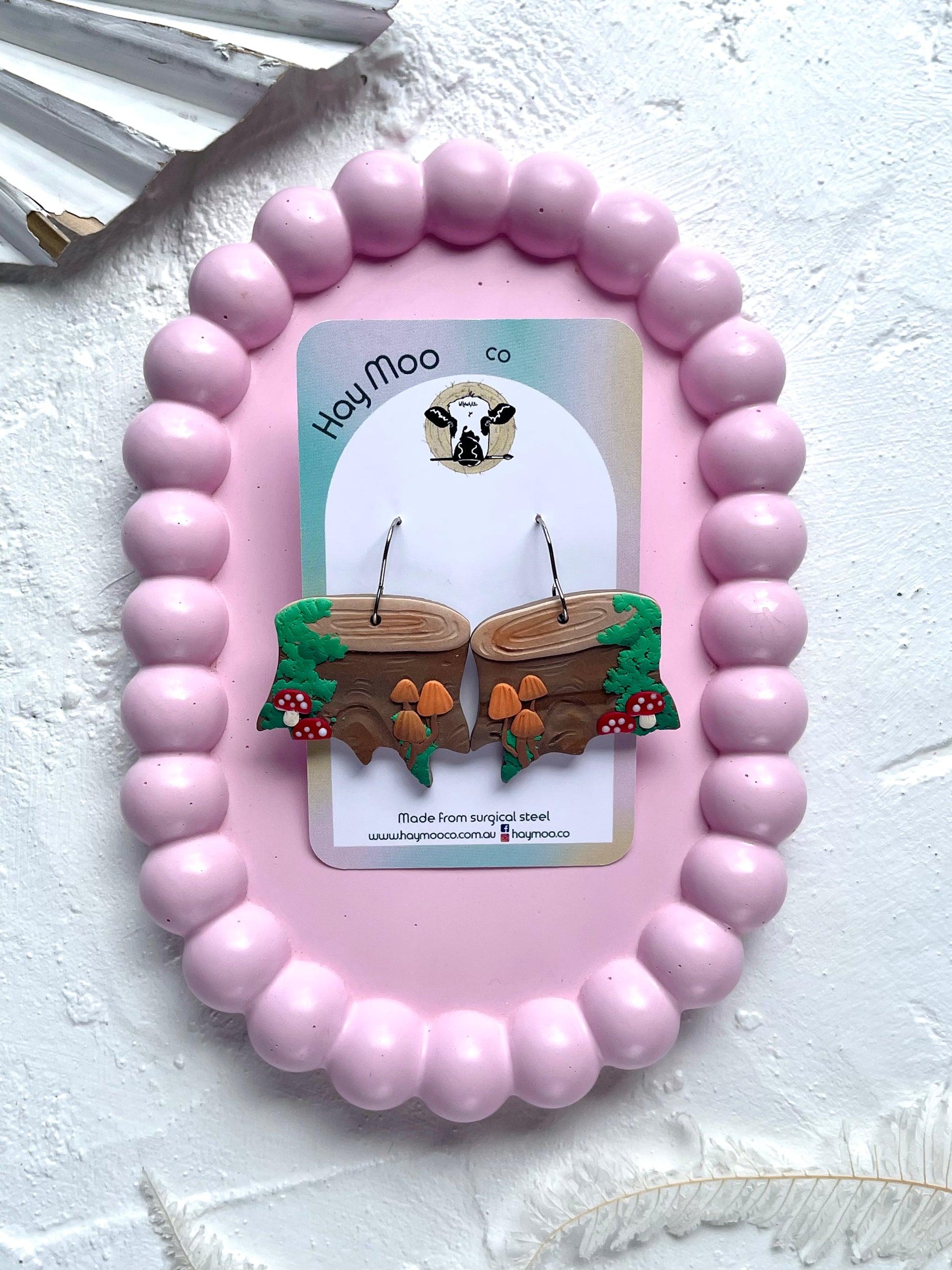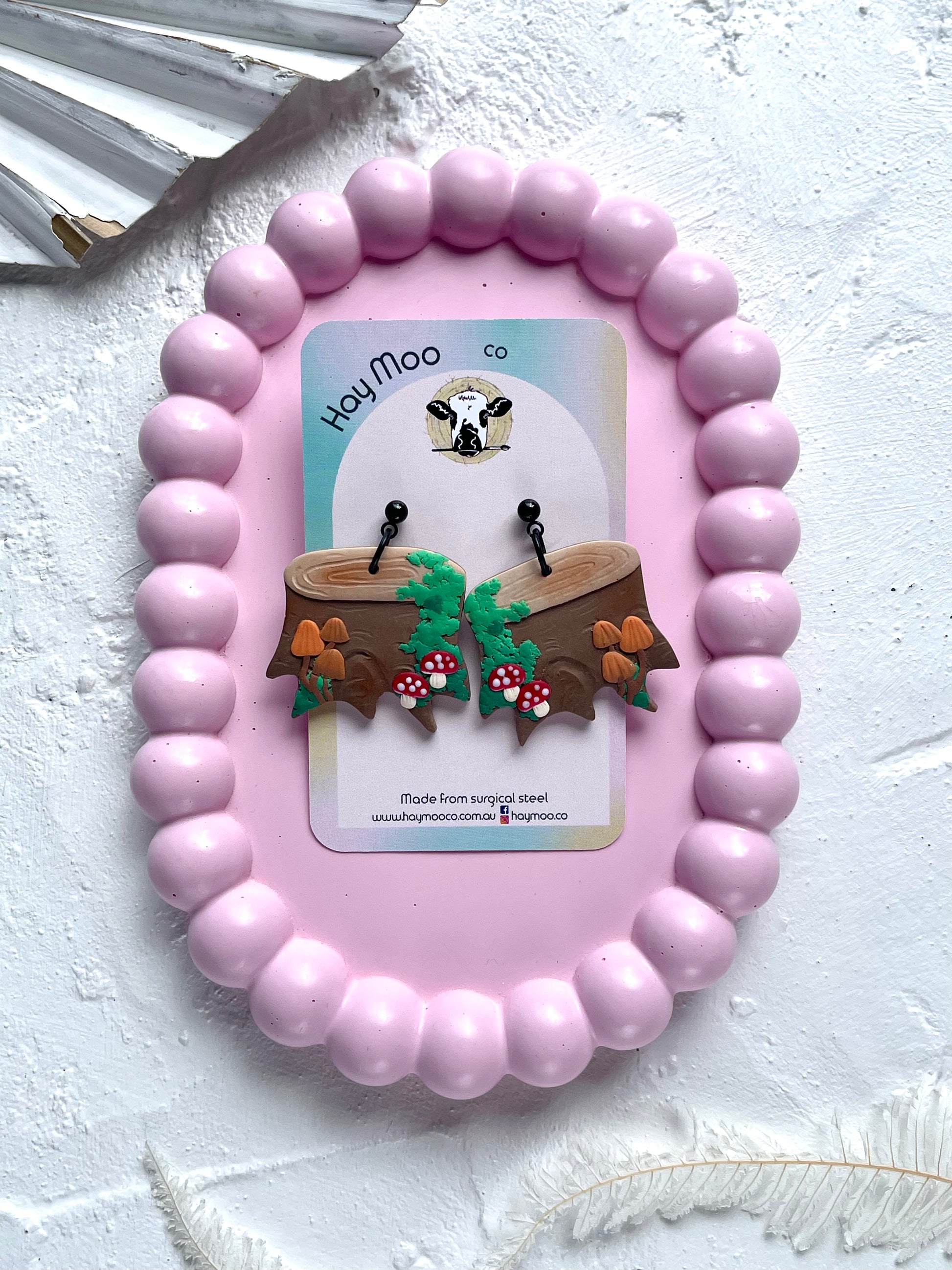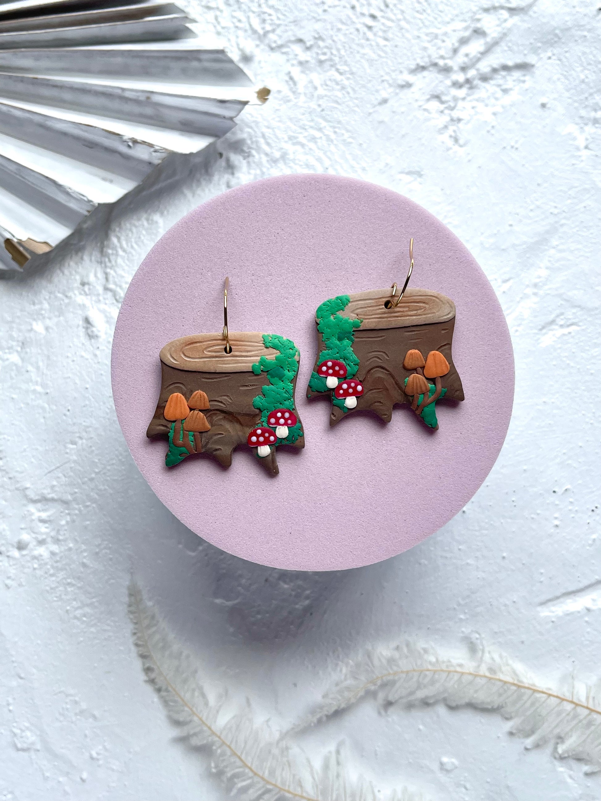 Handmade polymer clay earrings from the 'Mushroom Stump' range.