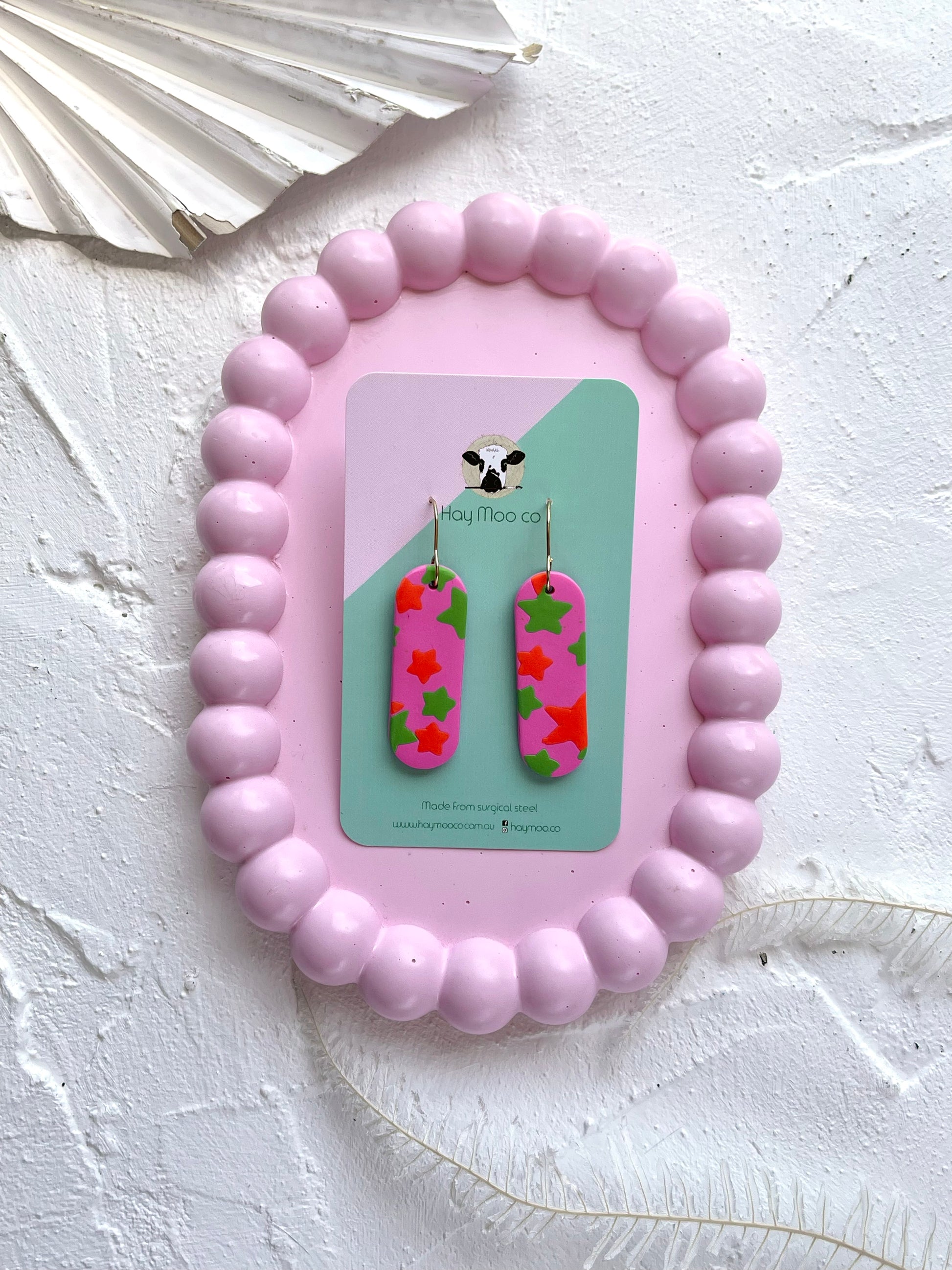 Handmade polymer clay earrings from the 'Neon Stars' range.