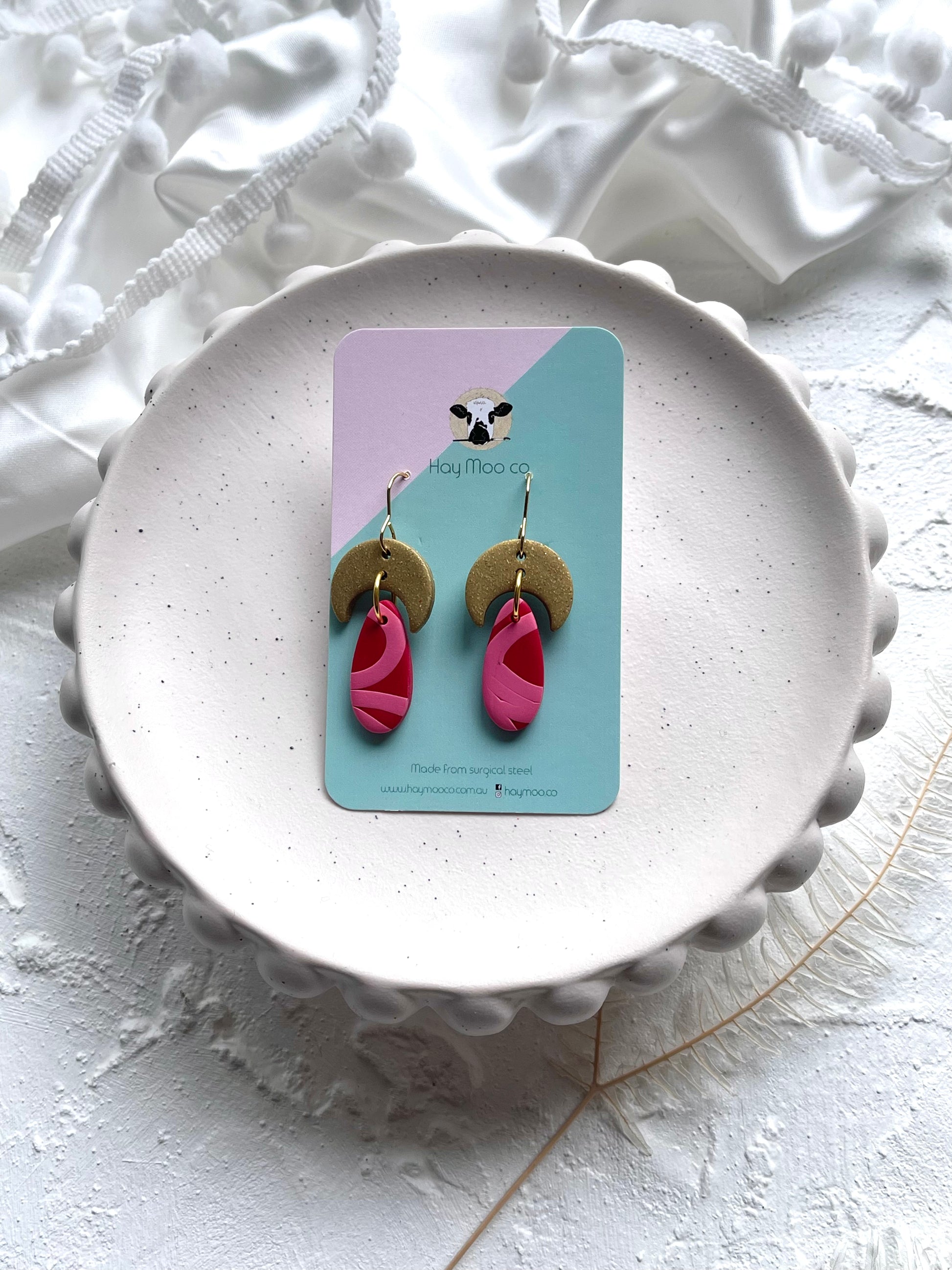 'Pink Stripe' Gold Moon Droplet Dangle