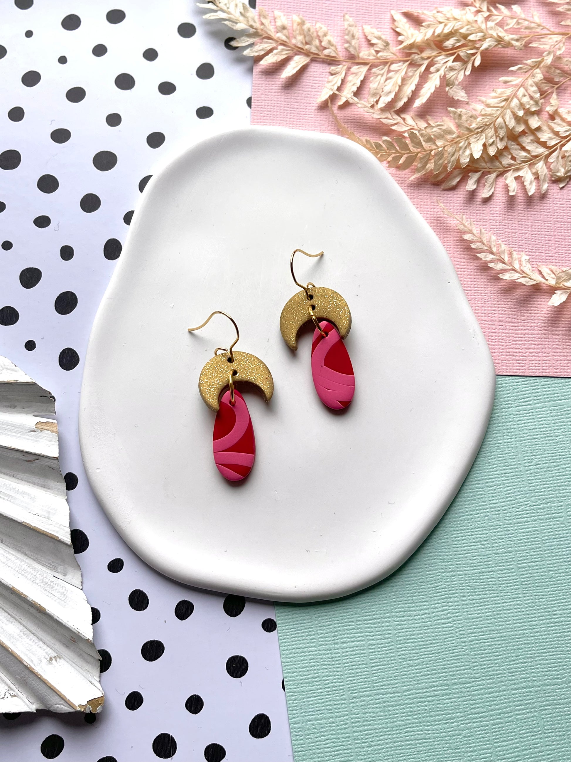 Polymer clay earrings are very light but must be treated with care, as they are wearable art!