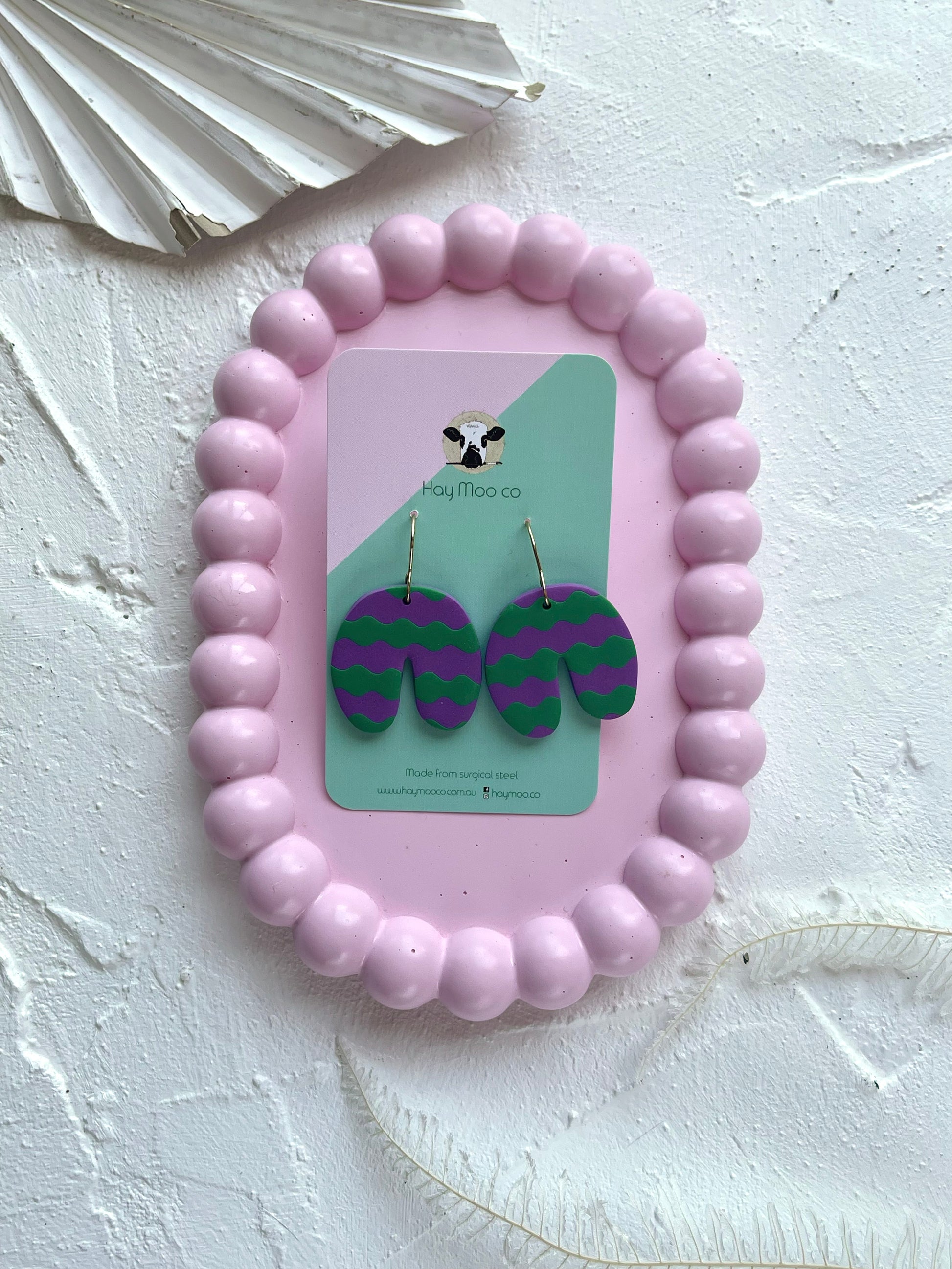 Handmade polymer clay earrings from the 'Plum Twist' range.