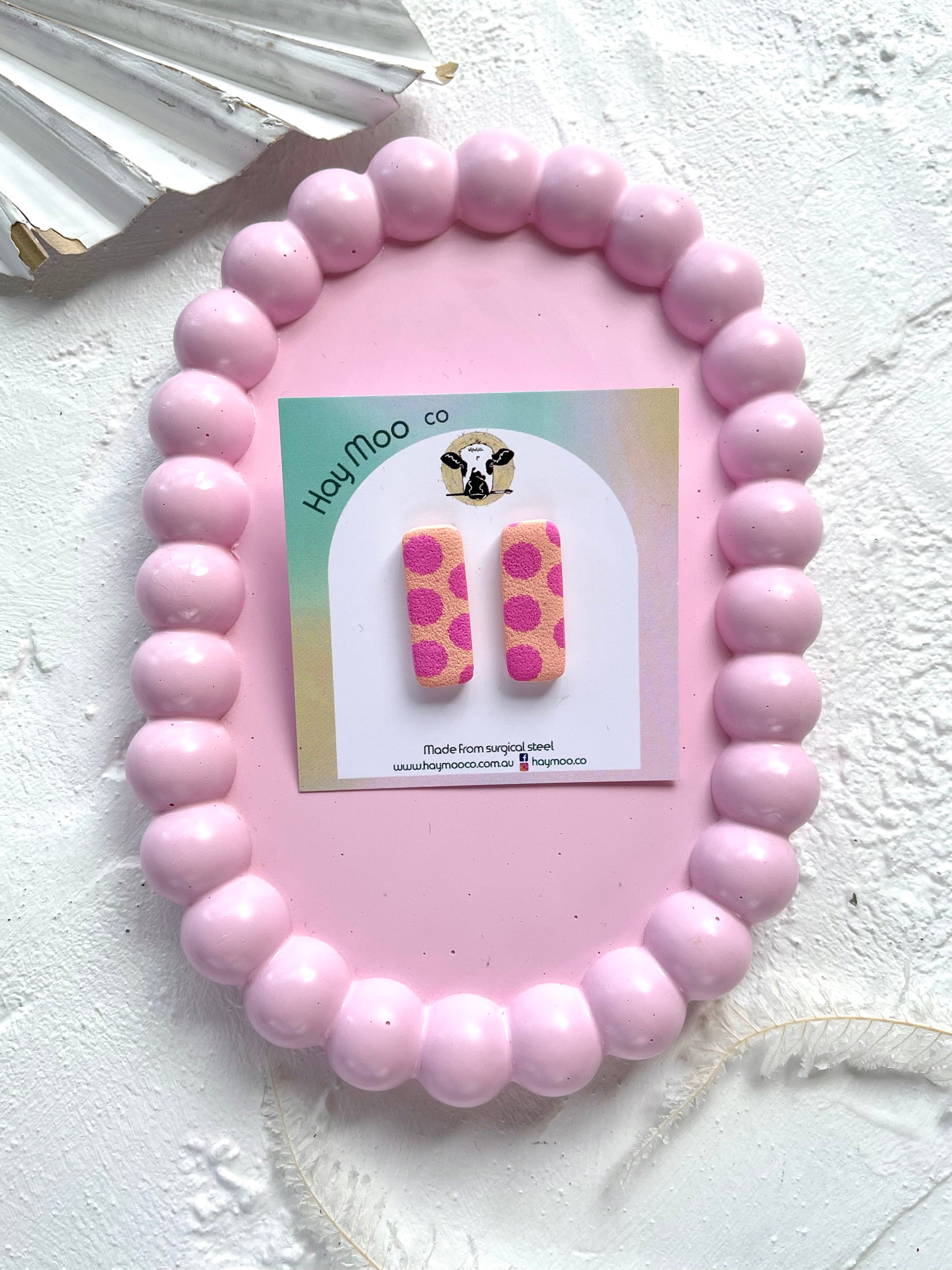 Handmade polymer clay earrings from the 'Polka Peach' range.