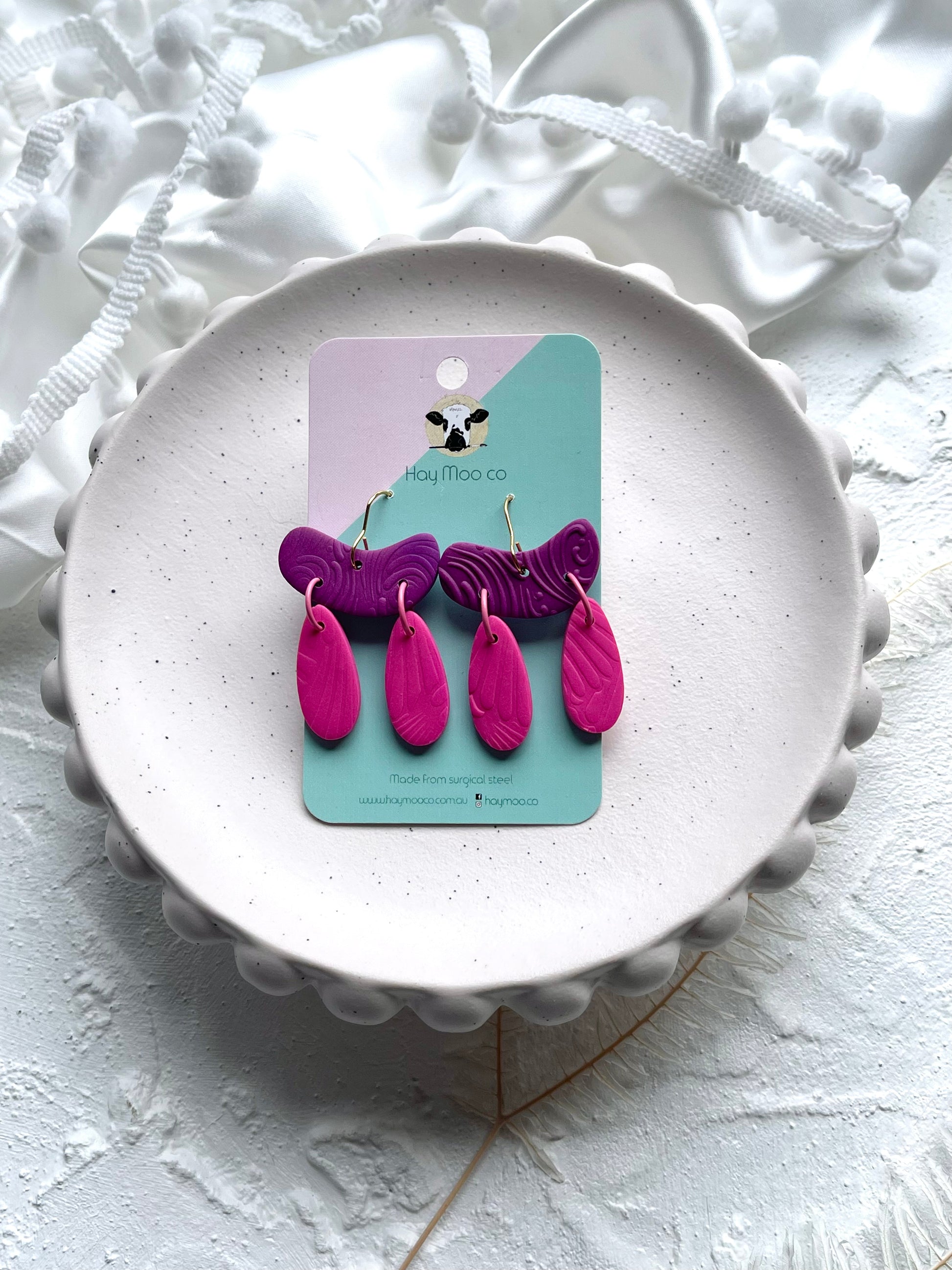 Handmade polymer clay earrings from the 'Purple Swirl' range.