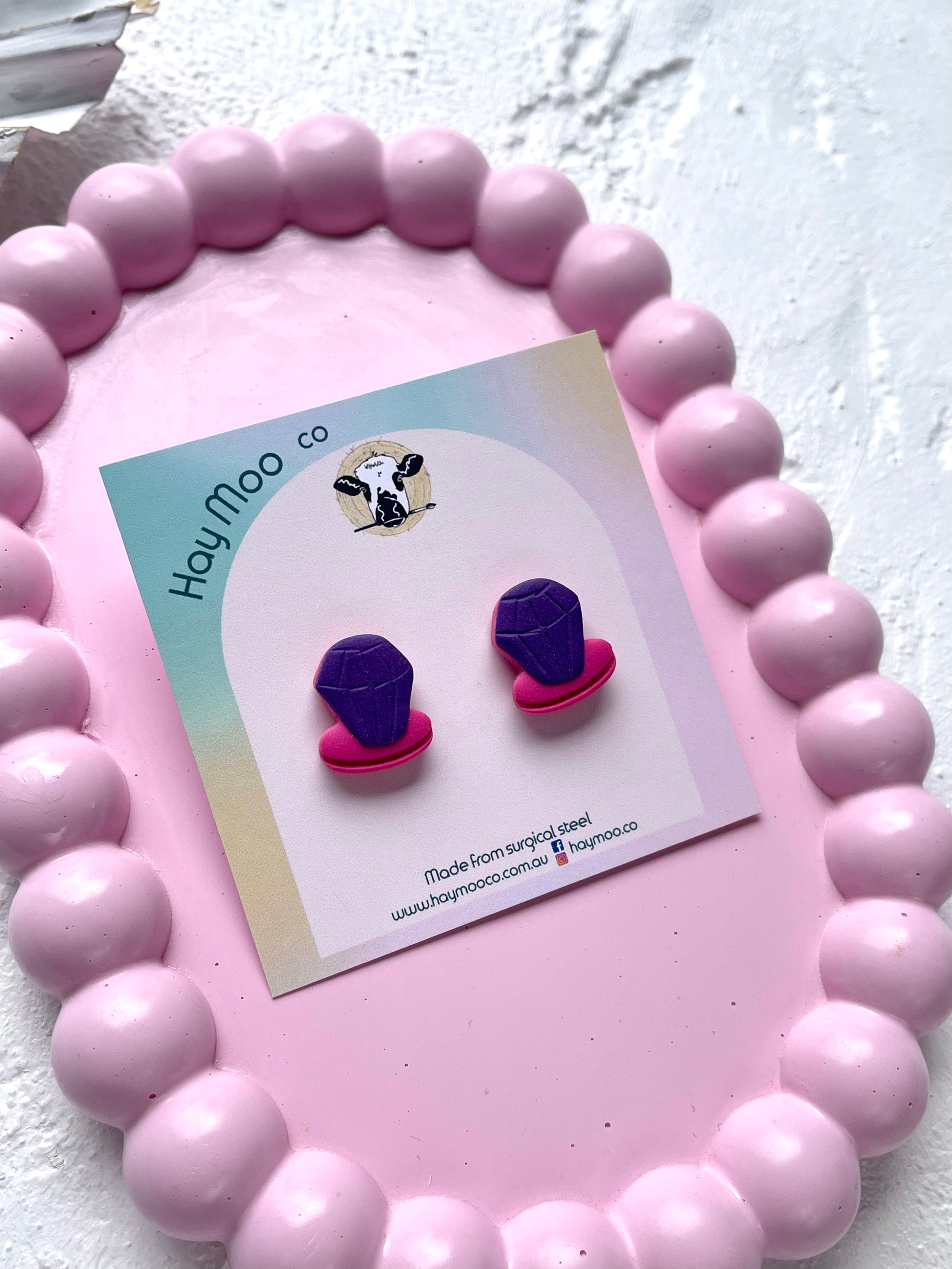 Handmade polymer clay earrings from the 'Ring Pop' range.