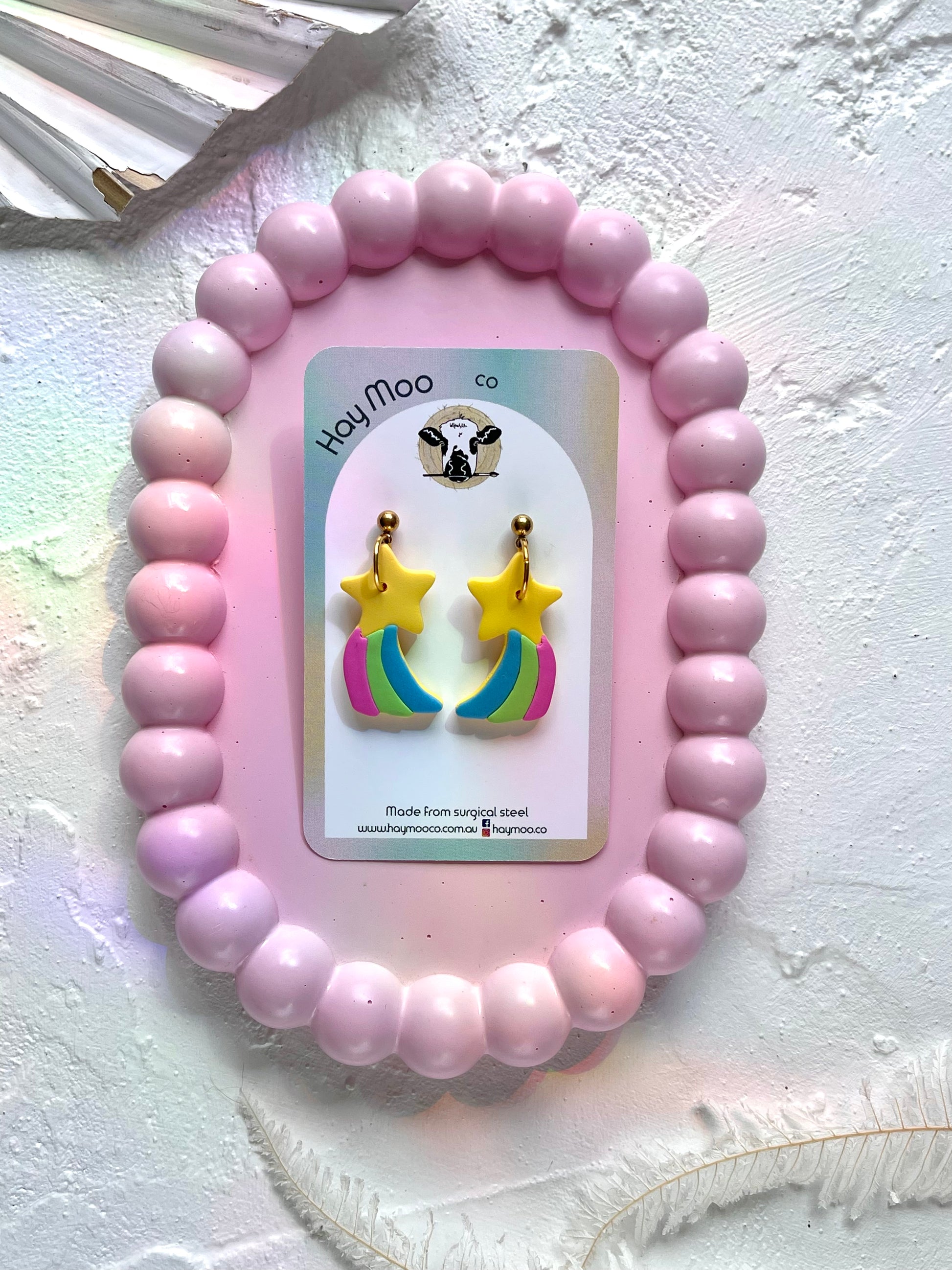 Handmade polymer clay earrings from the 'Shooting Star' range.