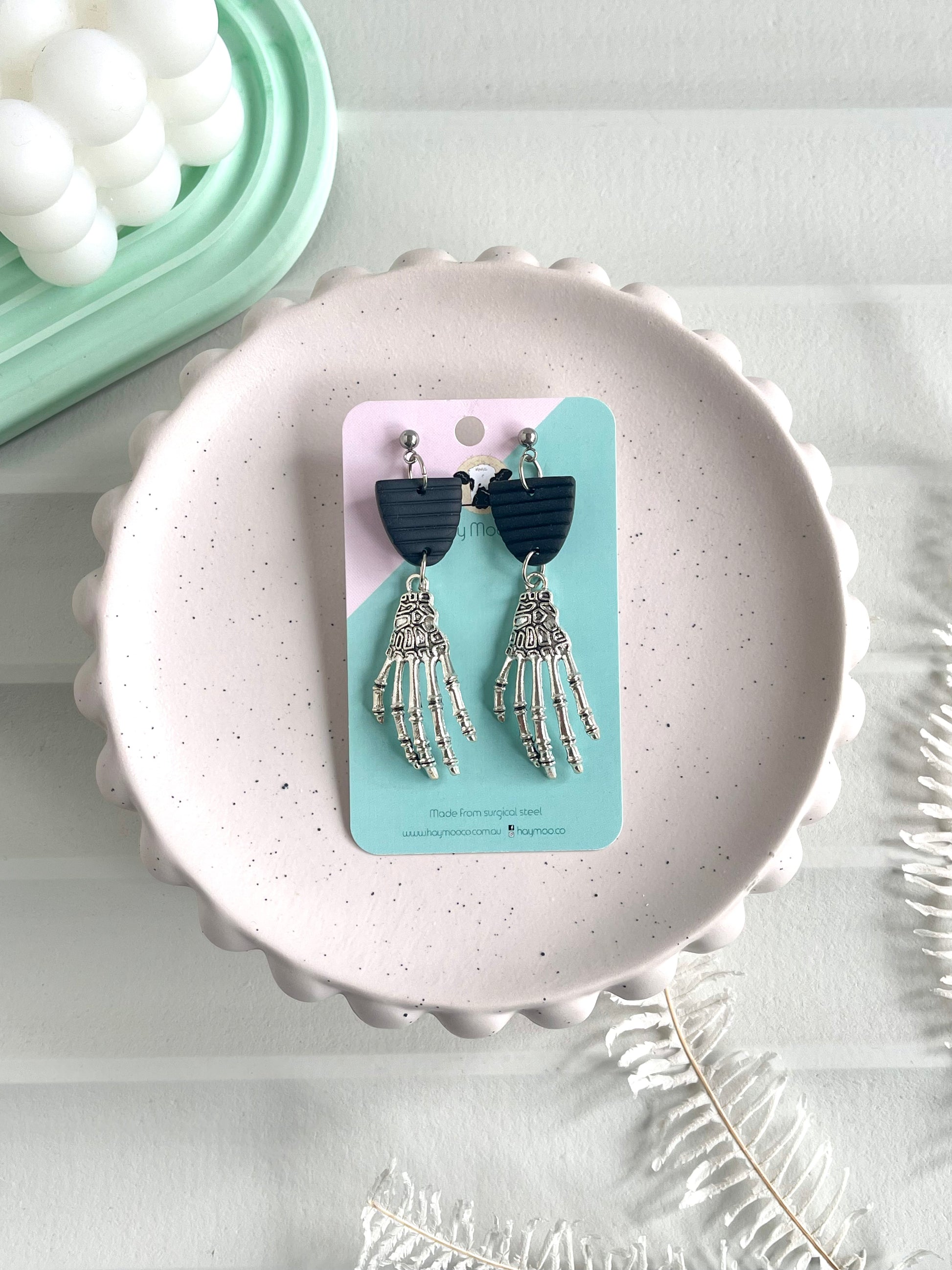 Handmade polymer clay earrings from the 'Skeleton' range.
