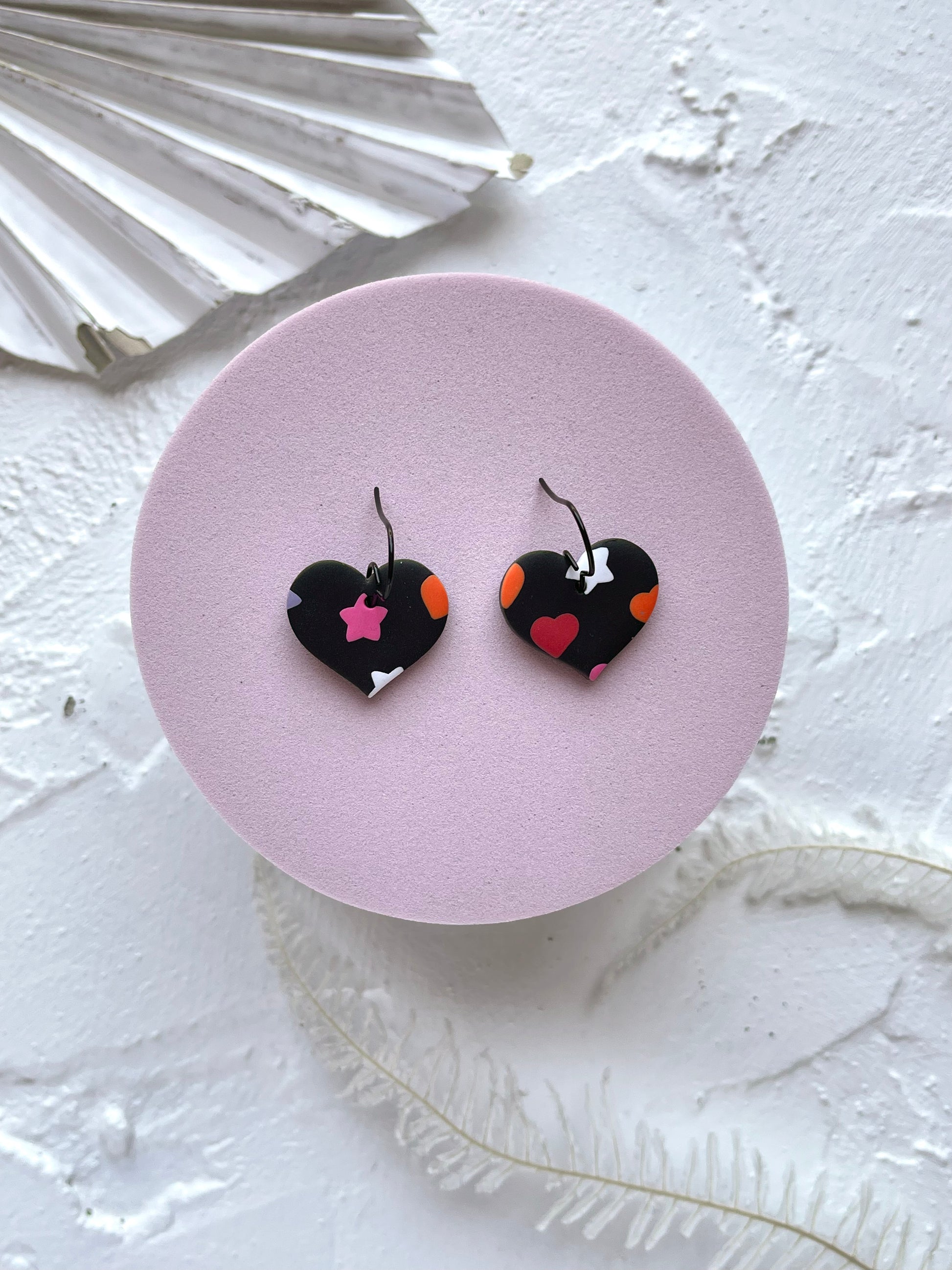 Handmade polymer clay earrings from the 'Starlit Love' range.