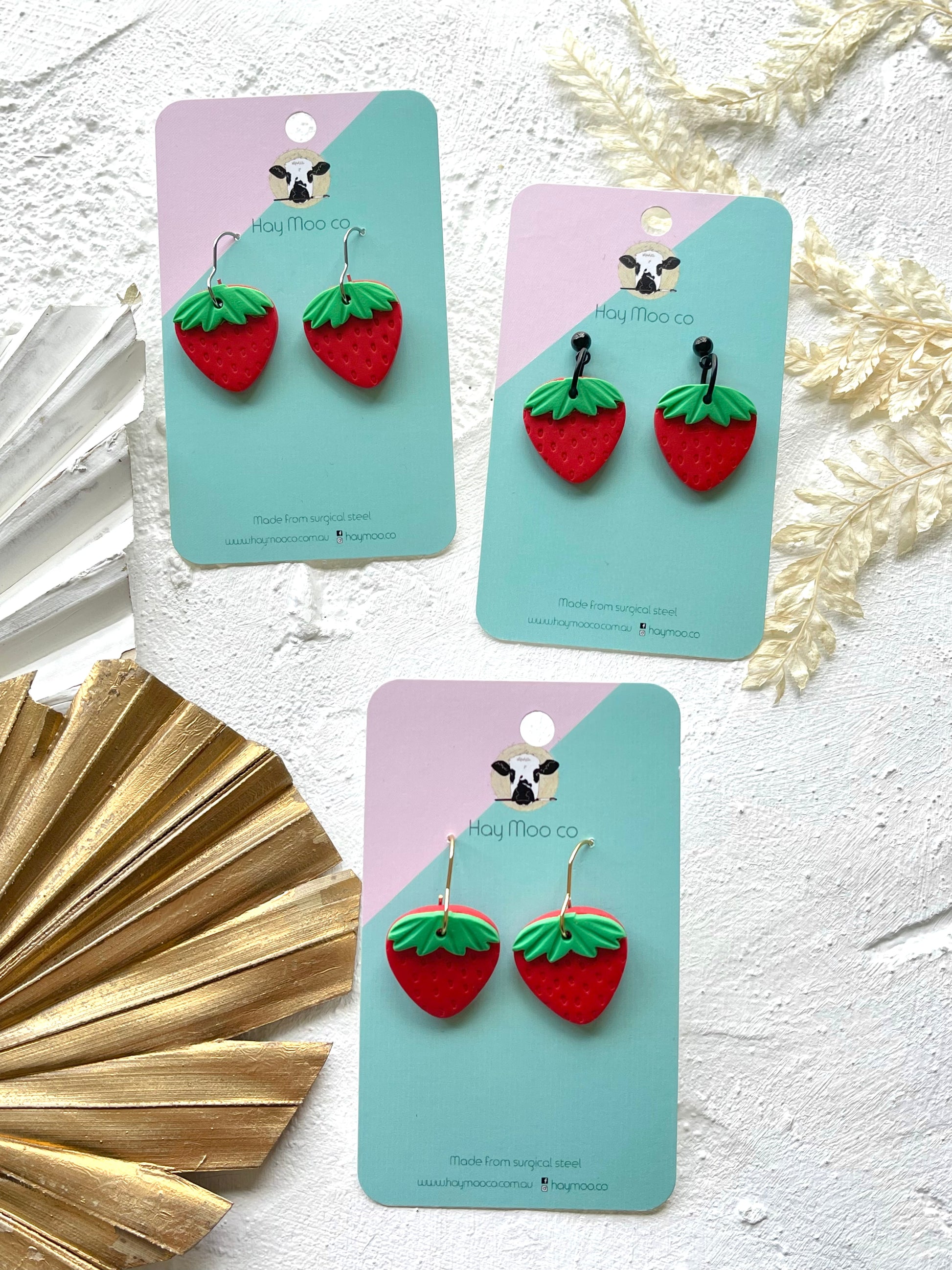 Handmade polymer clay earrings from the 'Strawberries' range.
