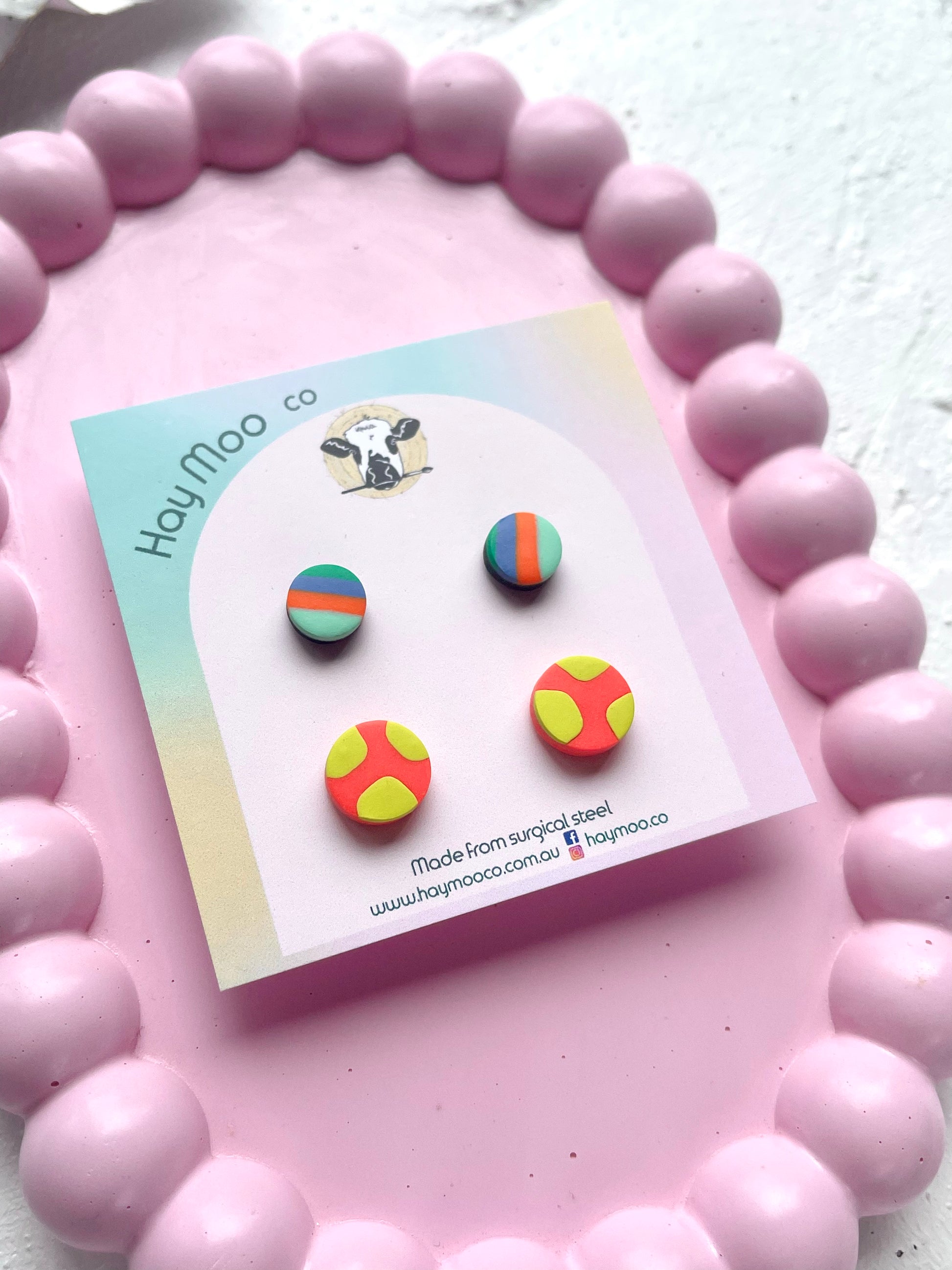 Handmade polymer clay earrings from the 'Stud Pack' range.