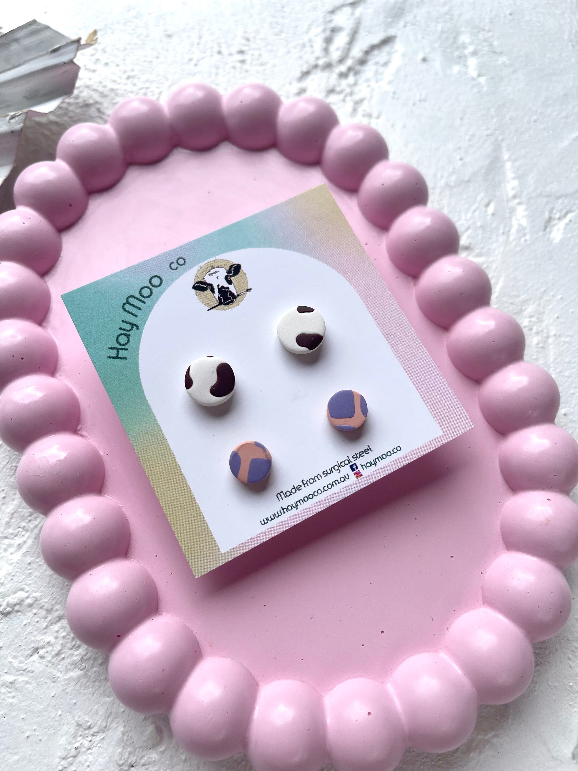 Handmade polymer clay earrings from the 'Stud Pack' range.