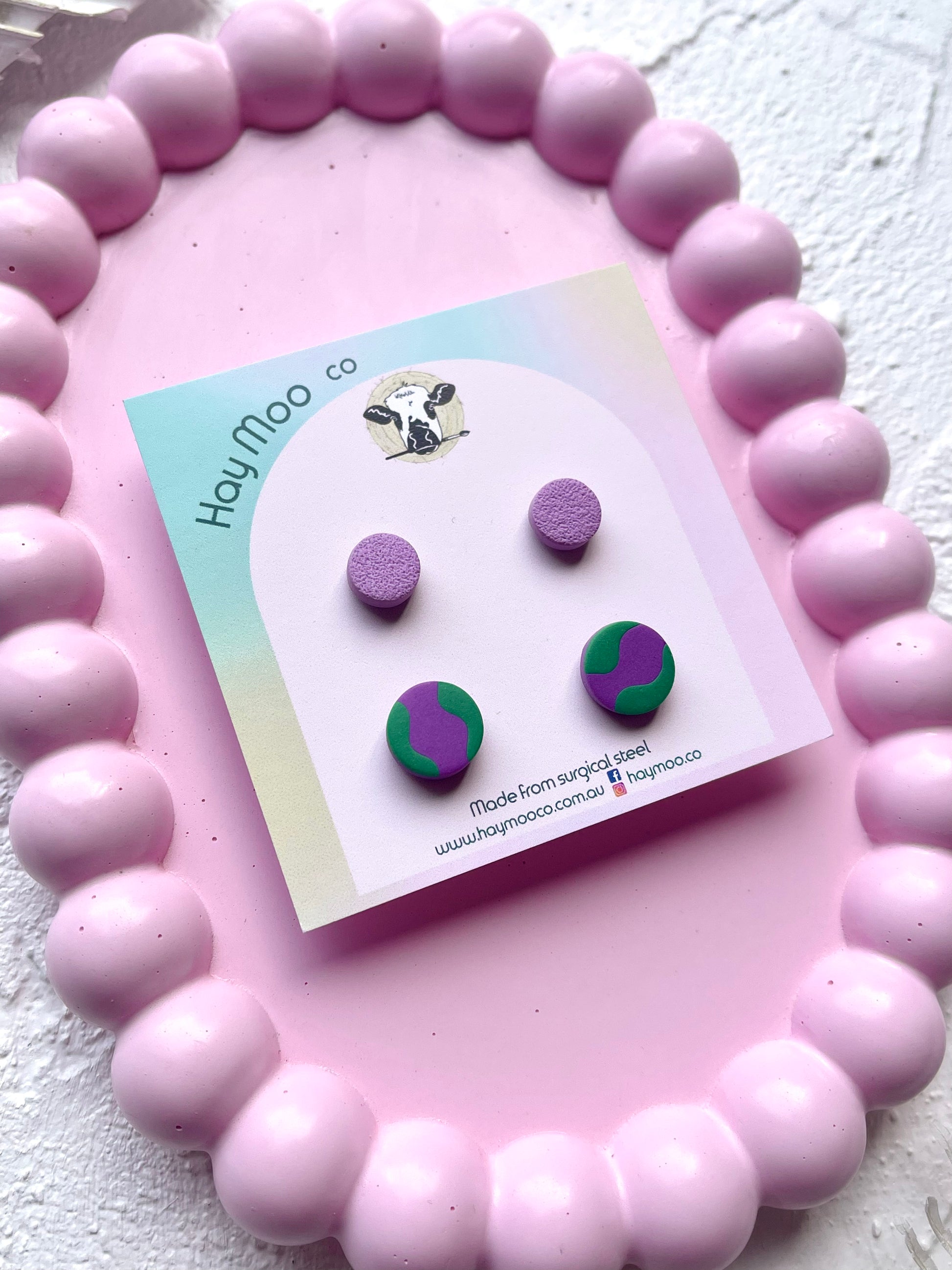 Handmade polymer clay earrings from the 'Stud Pack' range.