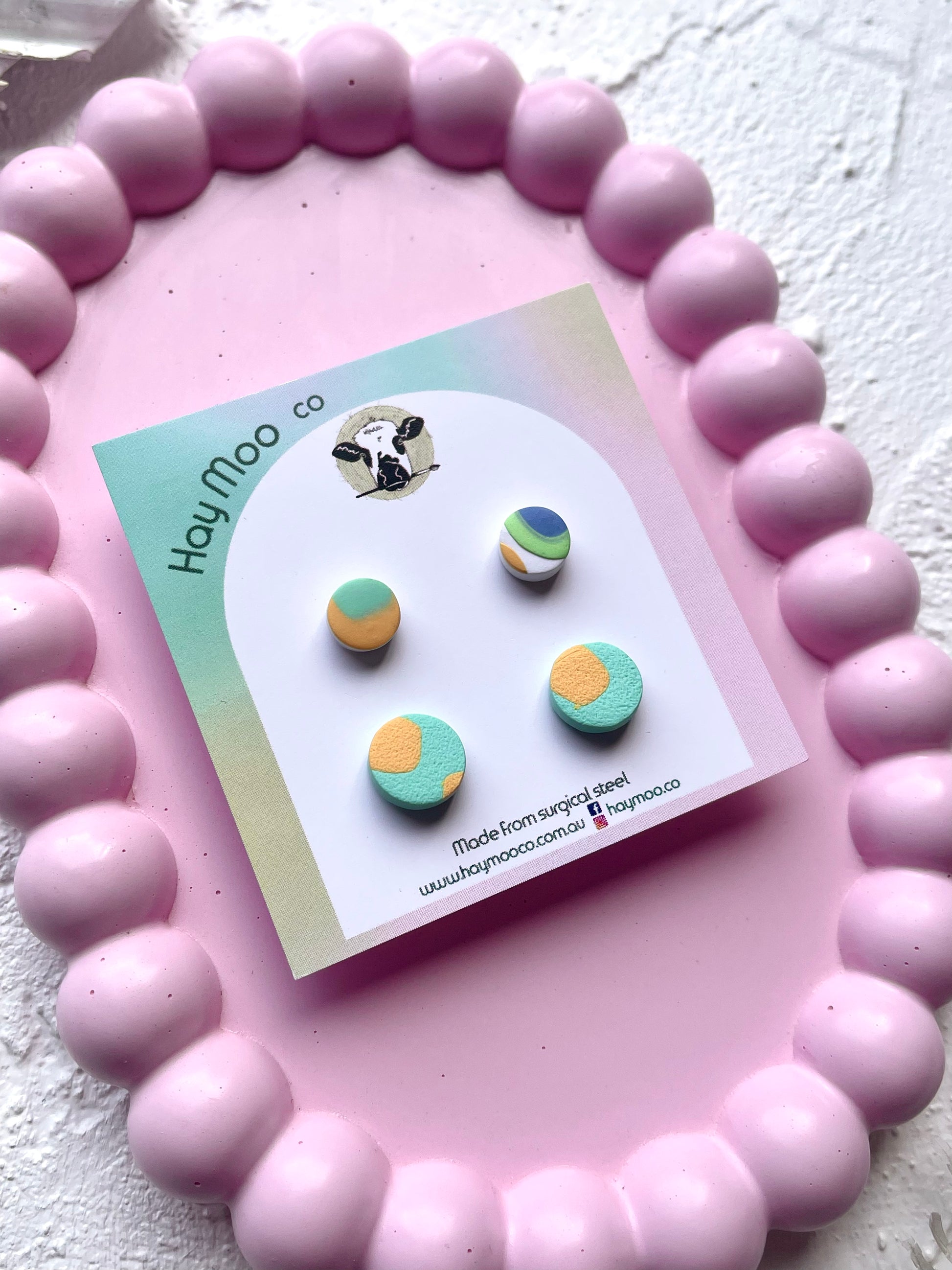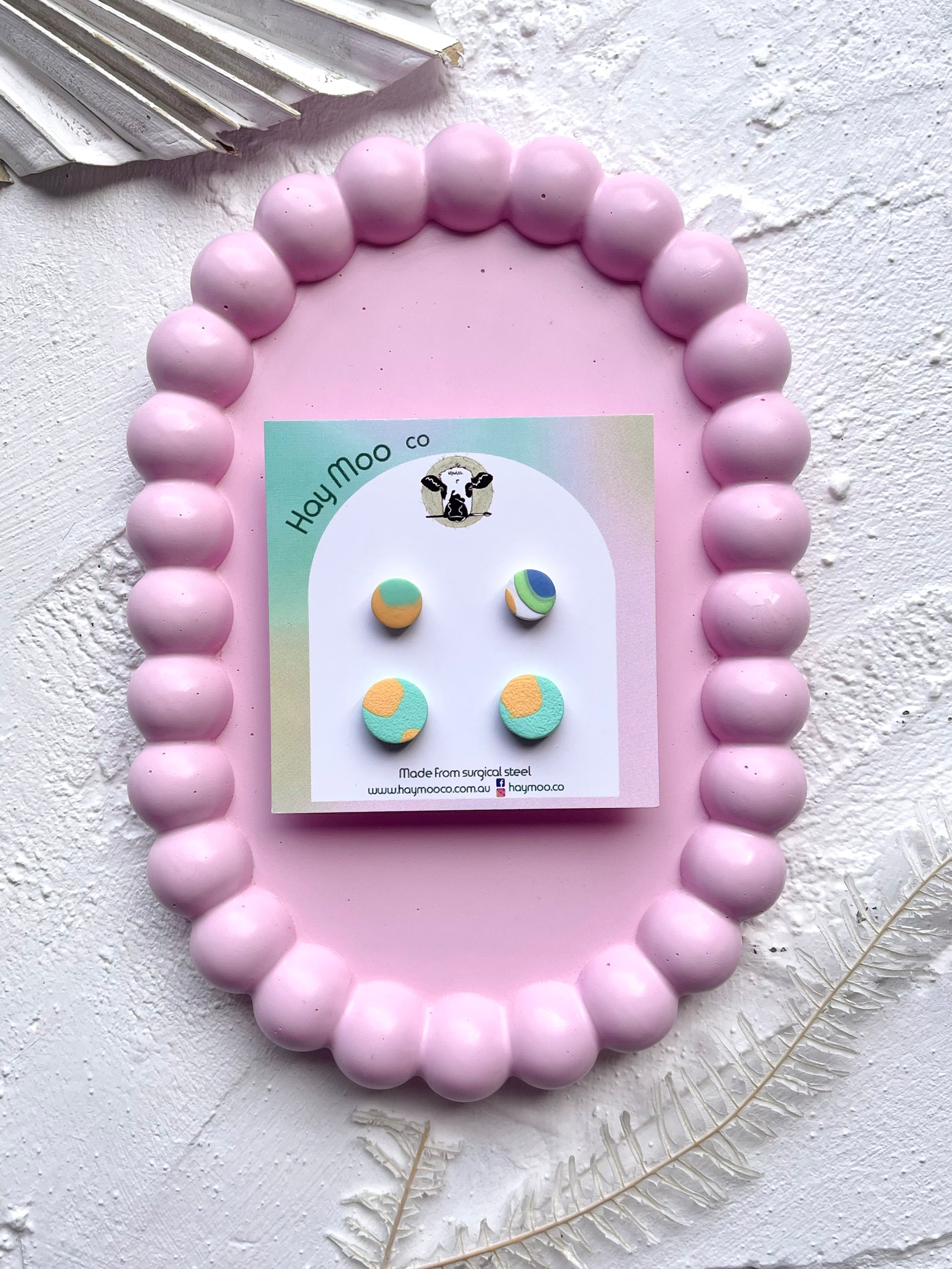 Handmade polymer clay earrings from the 'Stud Pack' range.