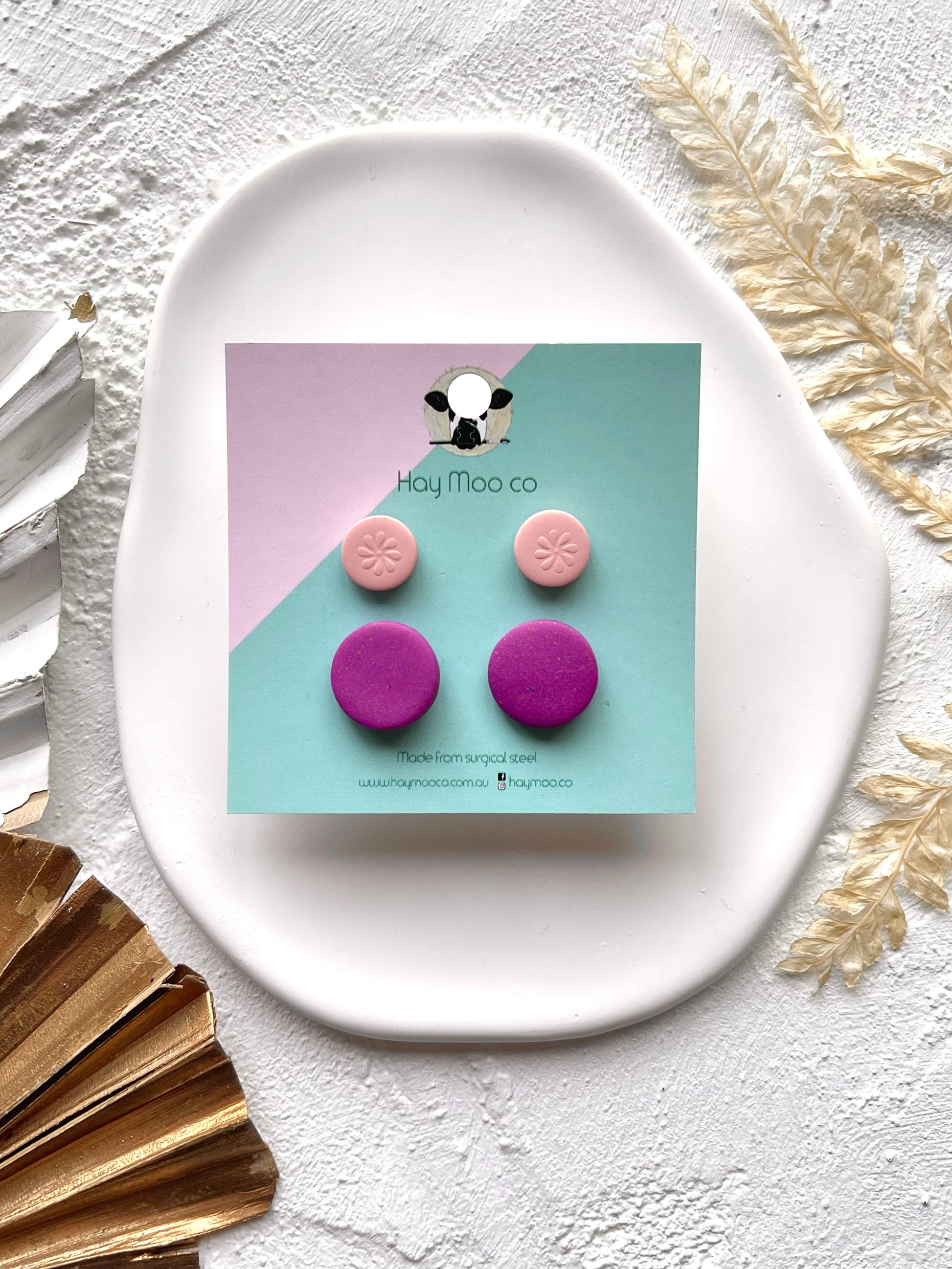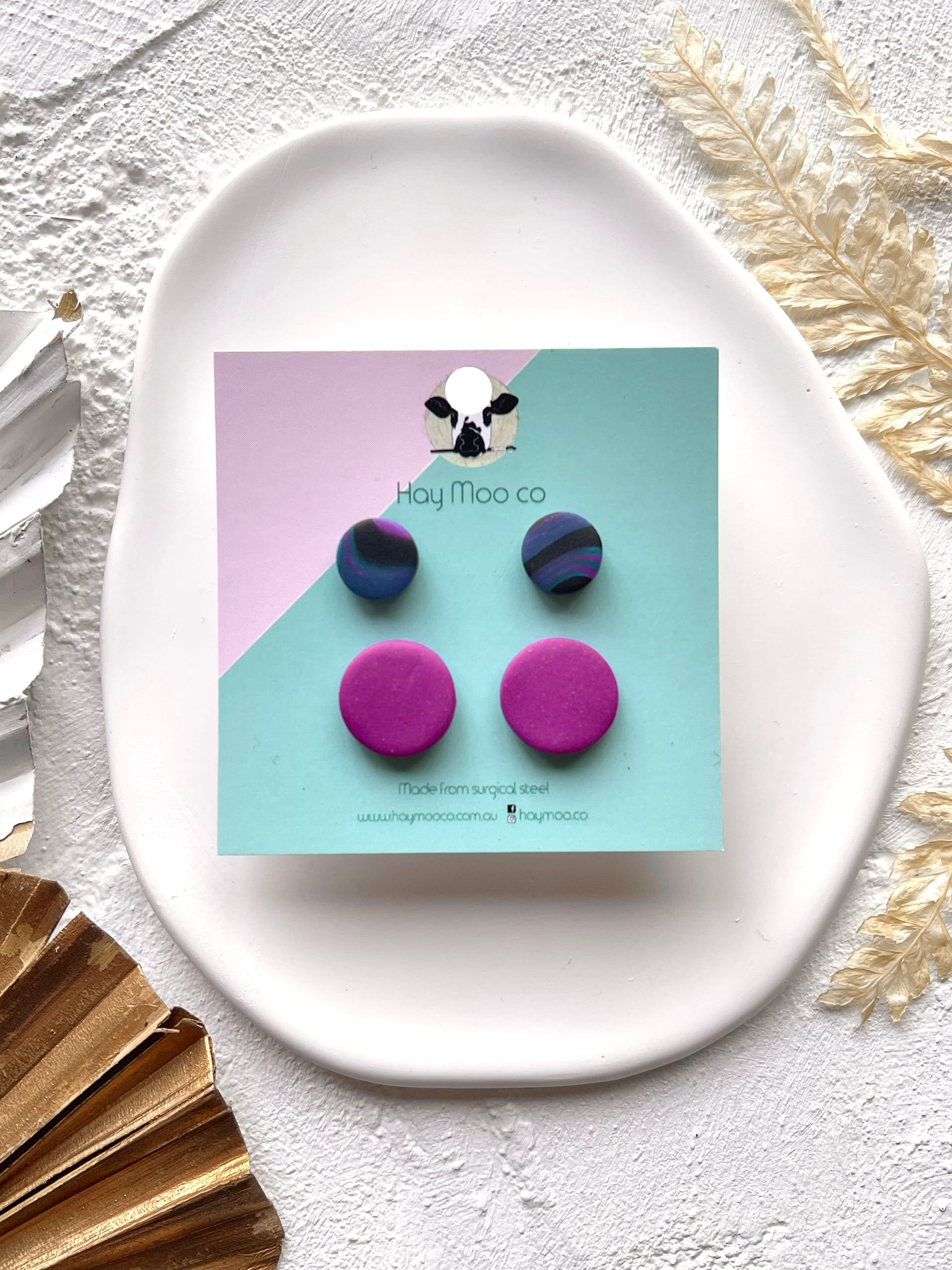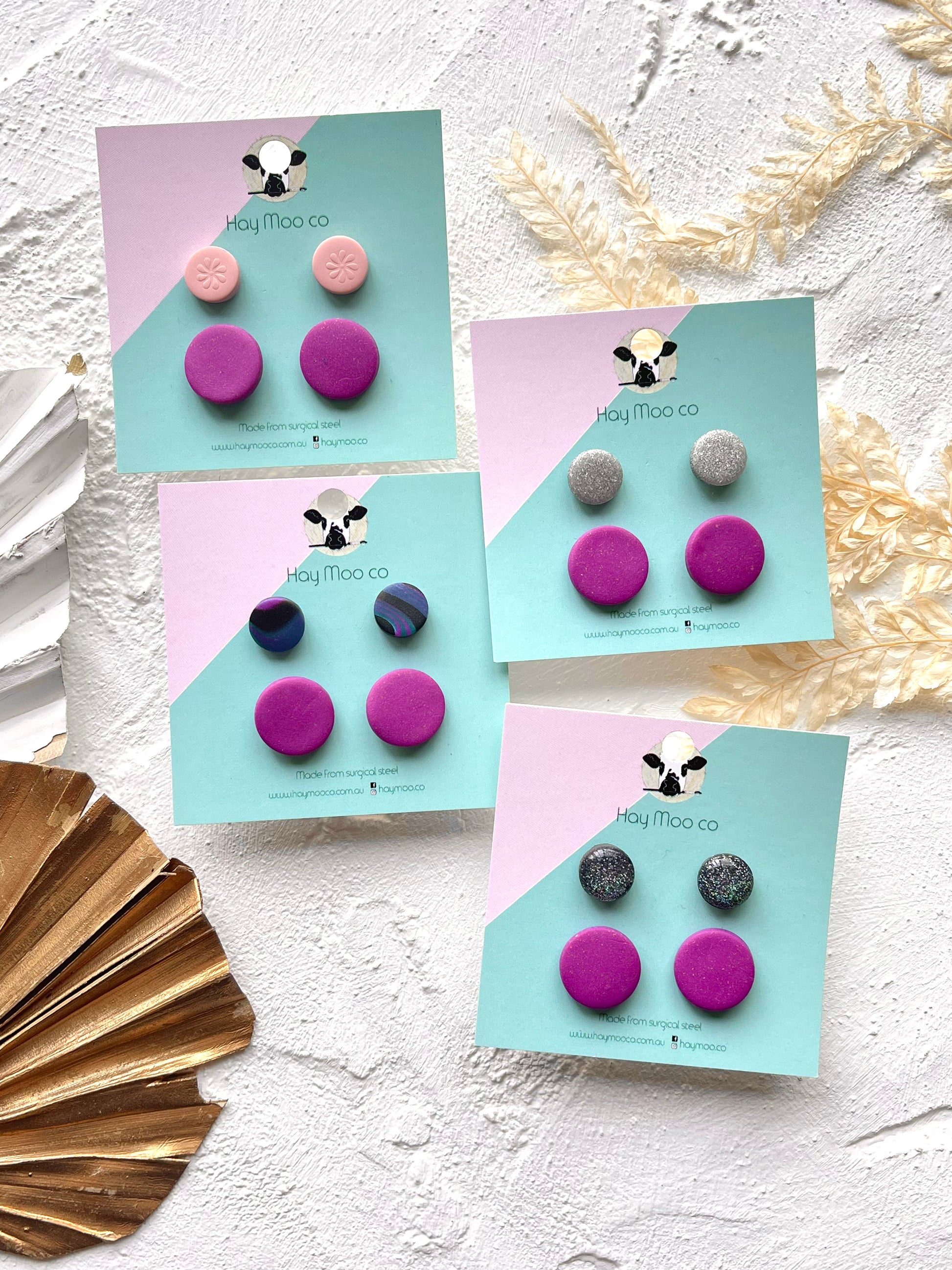 Handmade polymer clay earrings from the 'Stud Pack' range.