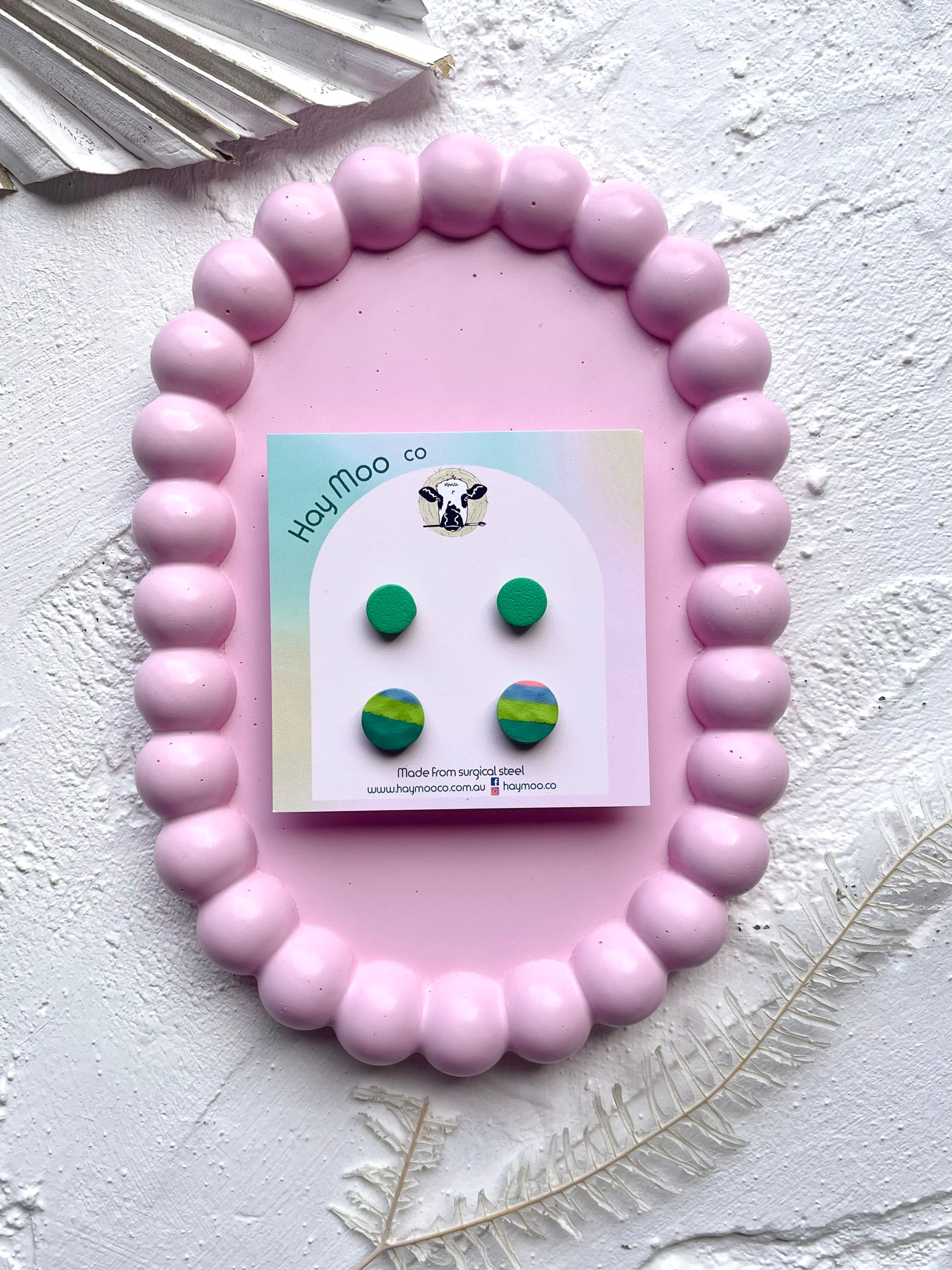 Handmade polymer clay earrings from the 'Stud Pack' range.