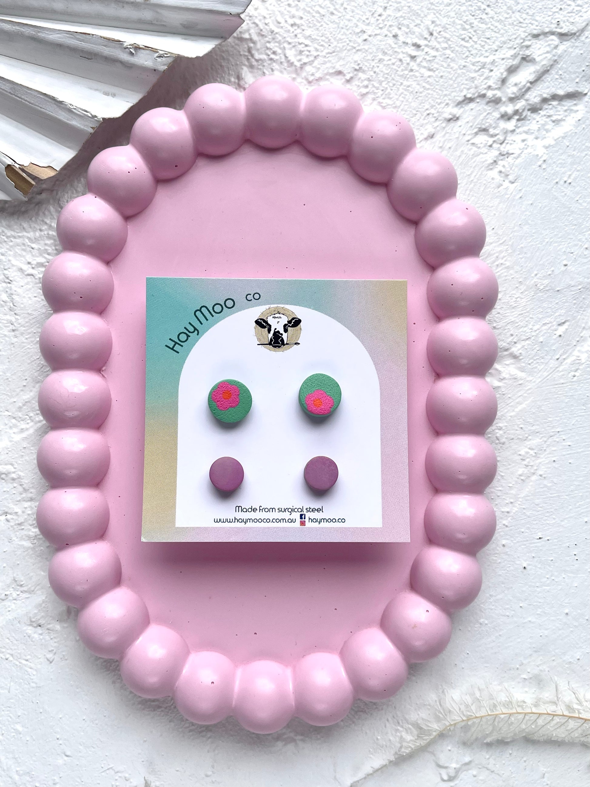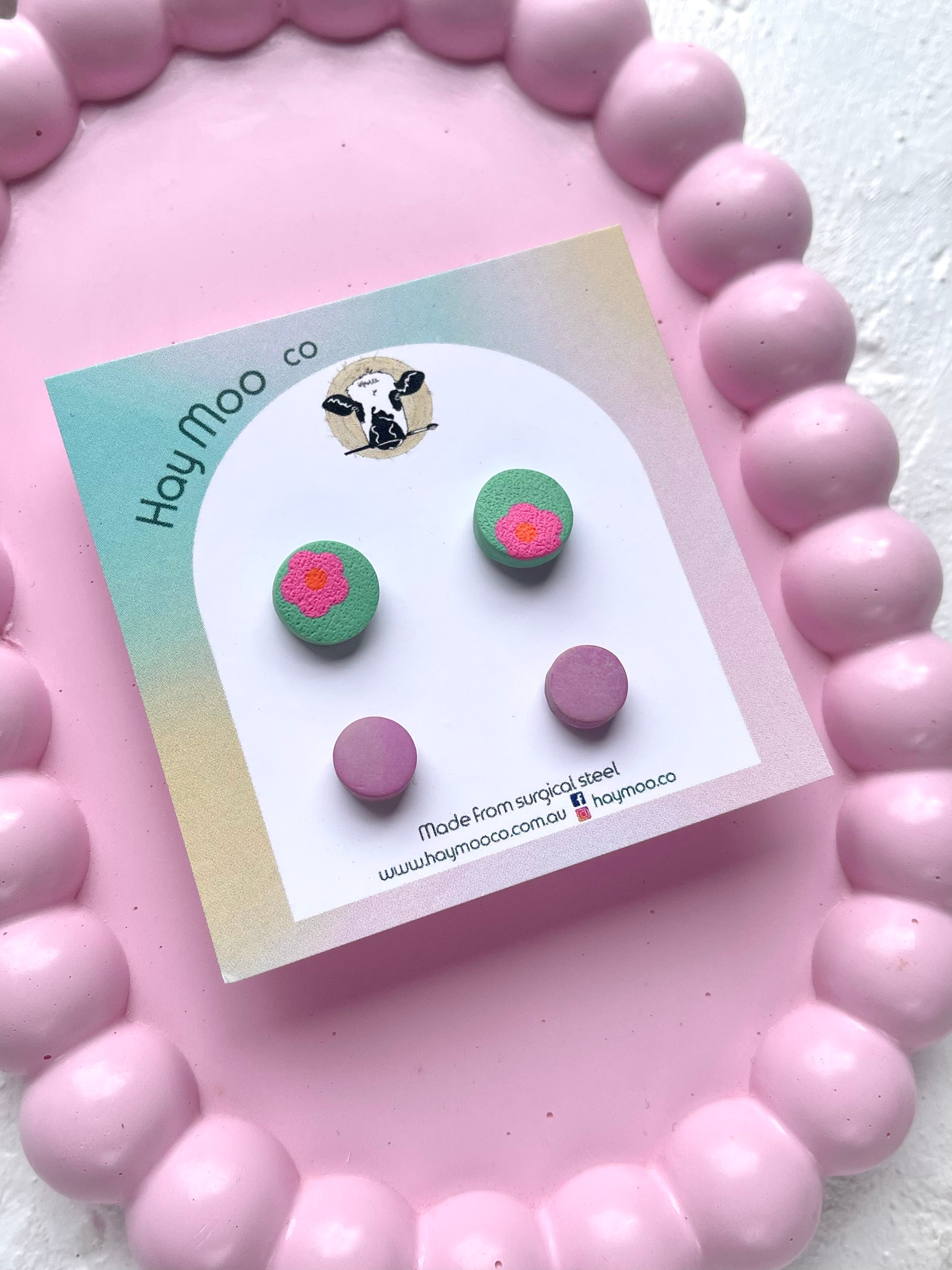 Handmade polymer clay earrings from the 'Stud Pack' range.