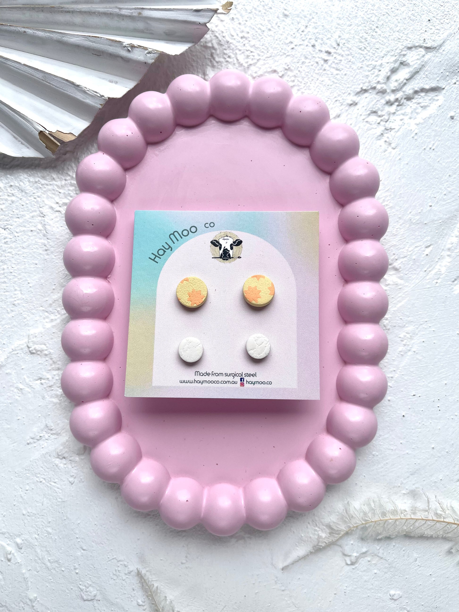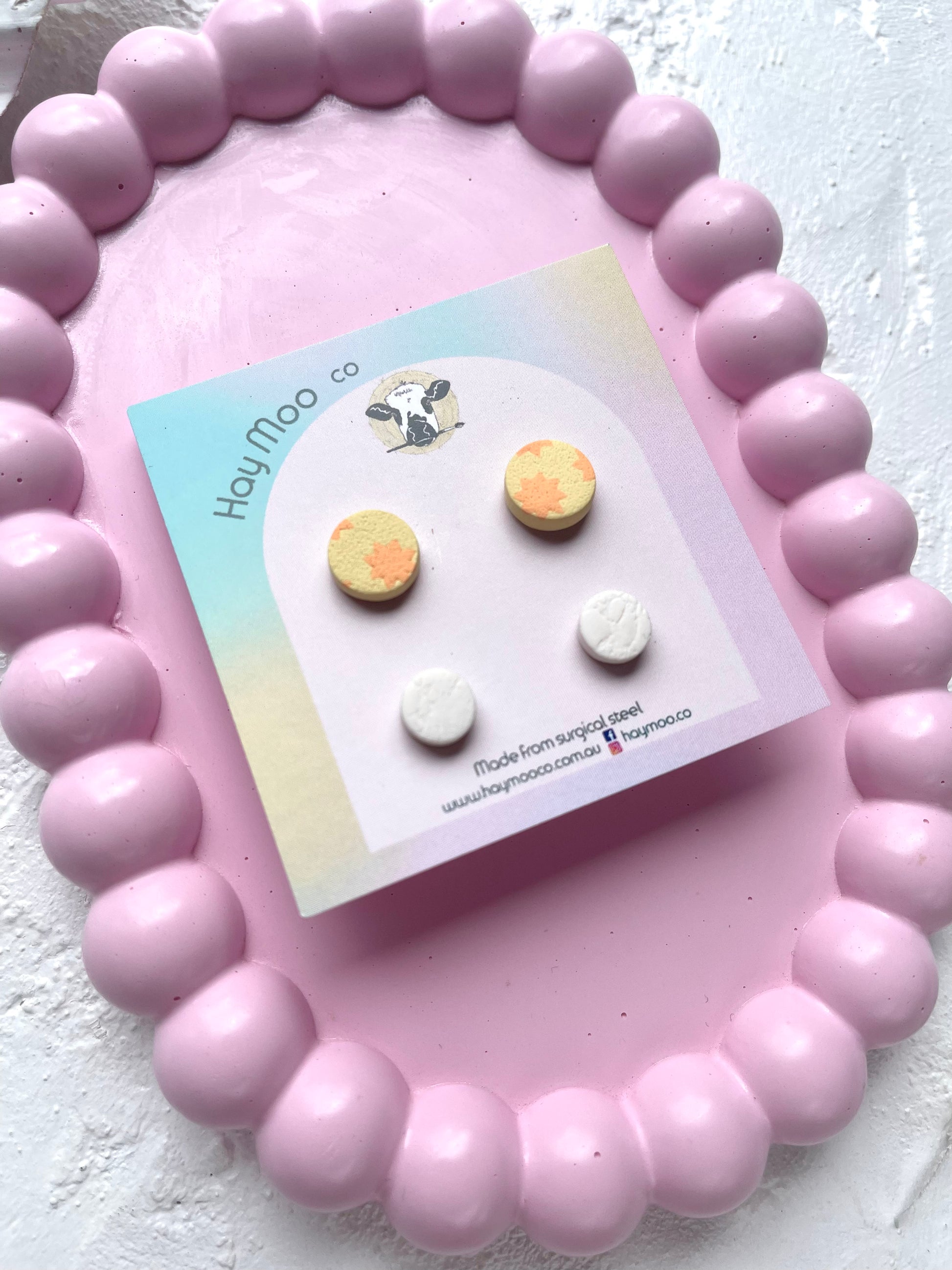 Handmade polymer clay earrings from the 'Stud Pack' range.