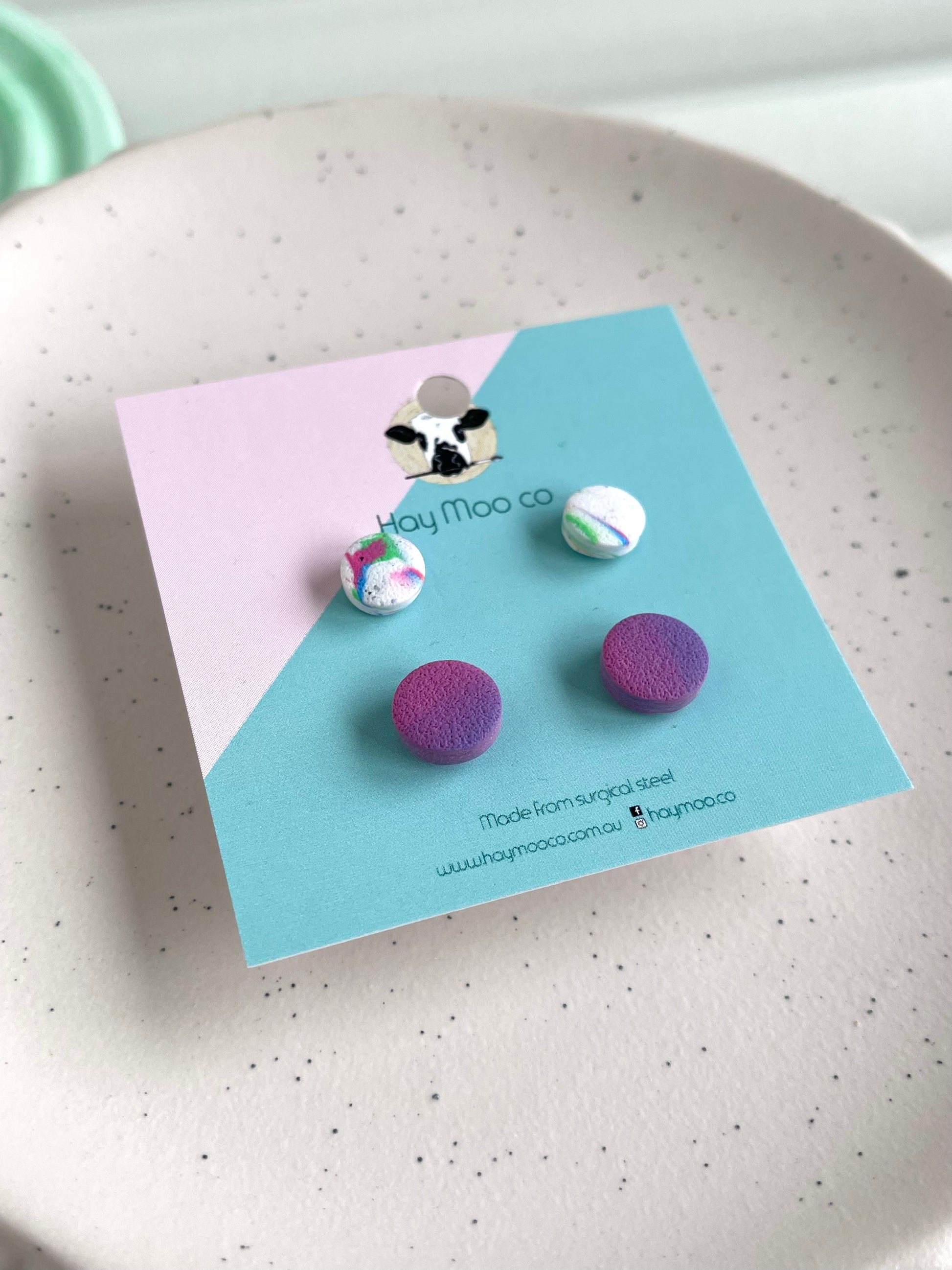 Handmade polymer clay earrings from the 'Stud Pack' range.
