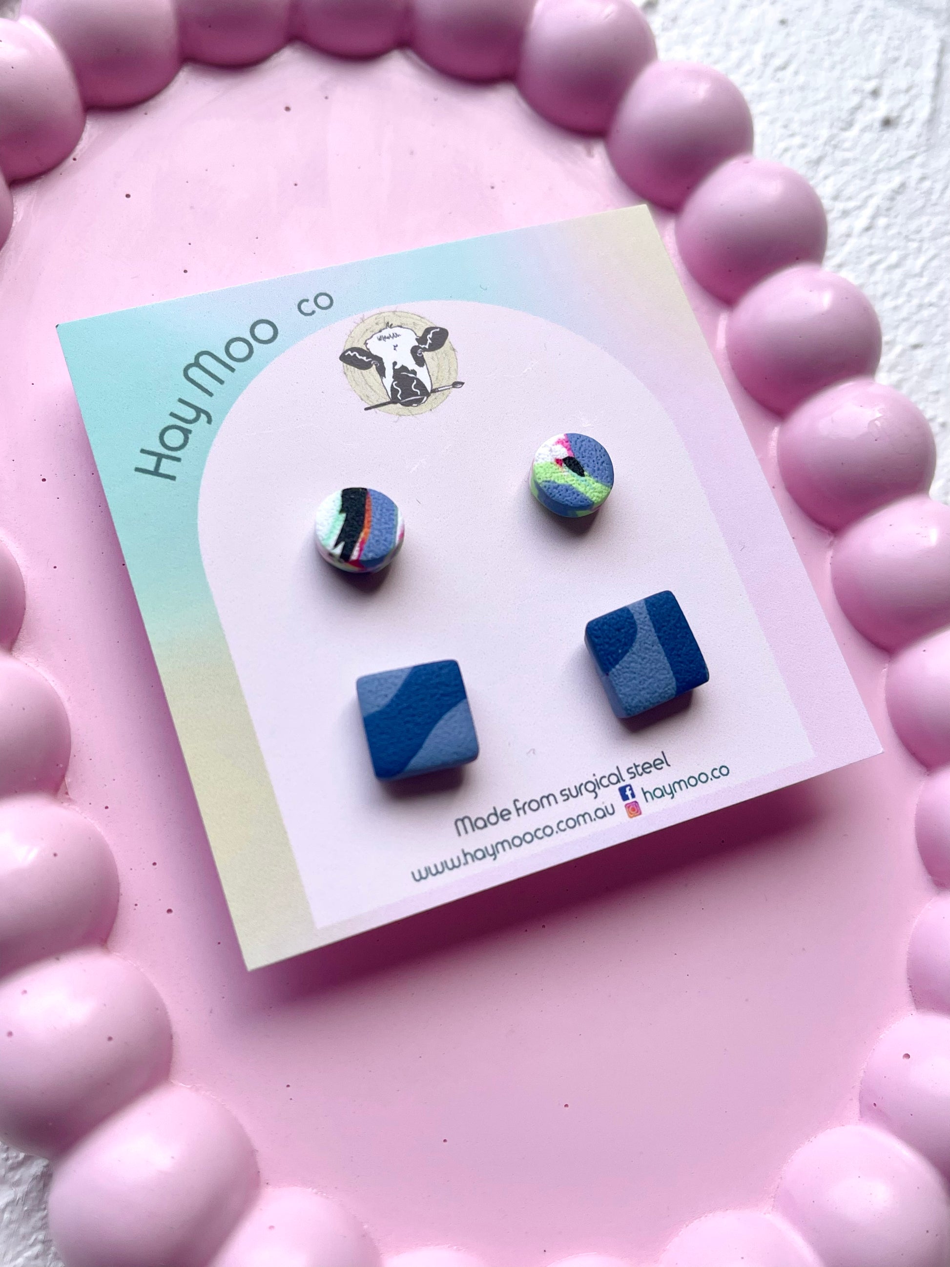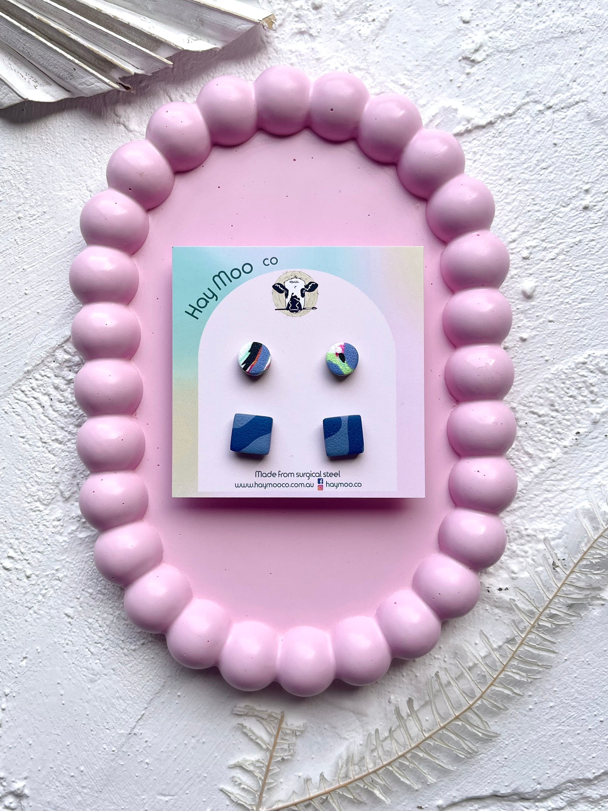 Handmade polymer clay earrings from the 'Stud Pack' range.