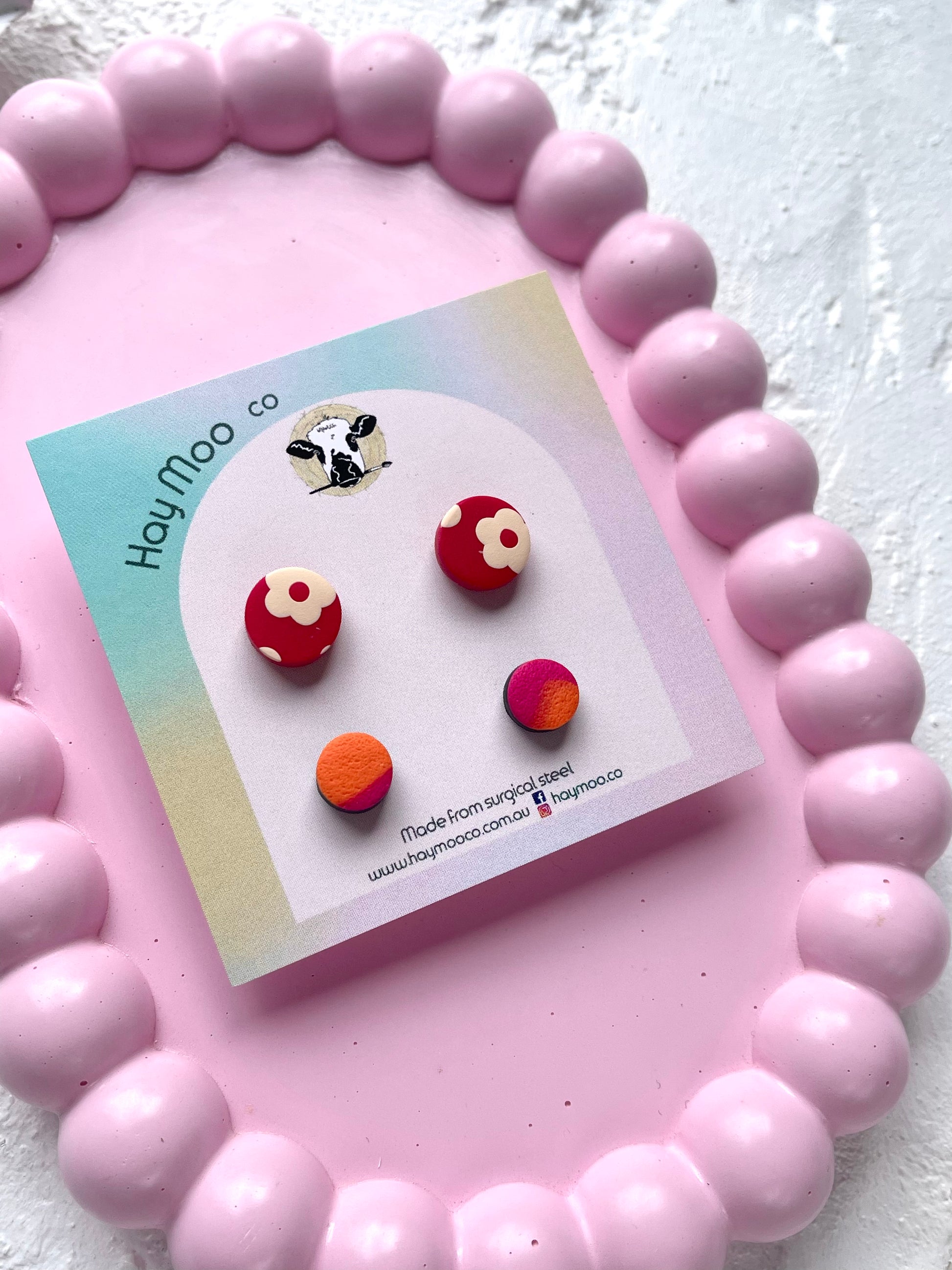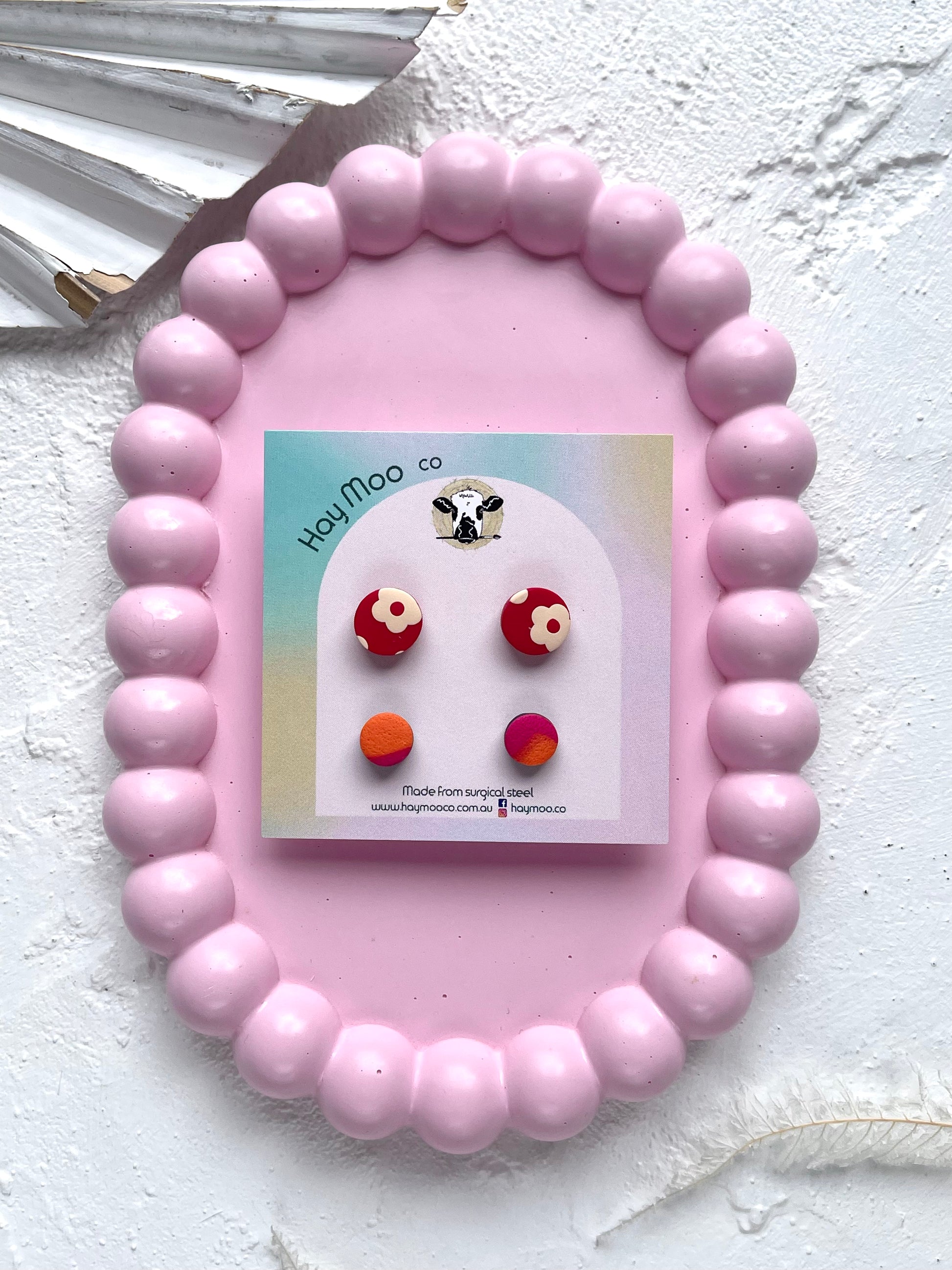 Handmade polymer clay earrings from the 'Stud Pack' range.