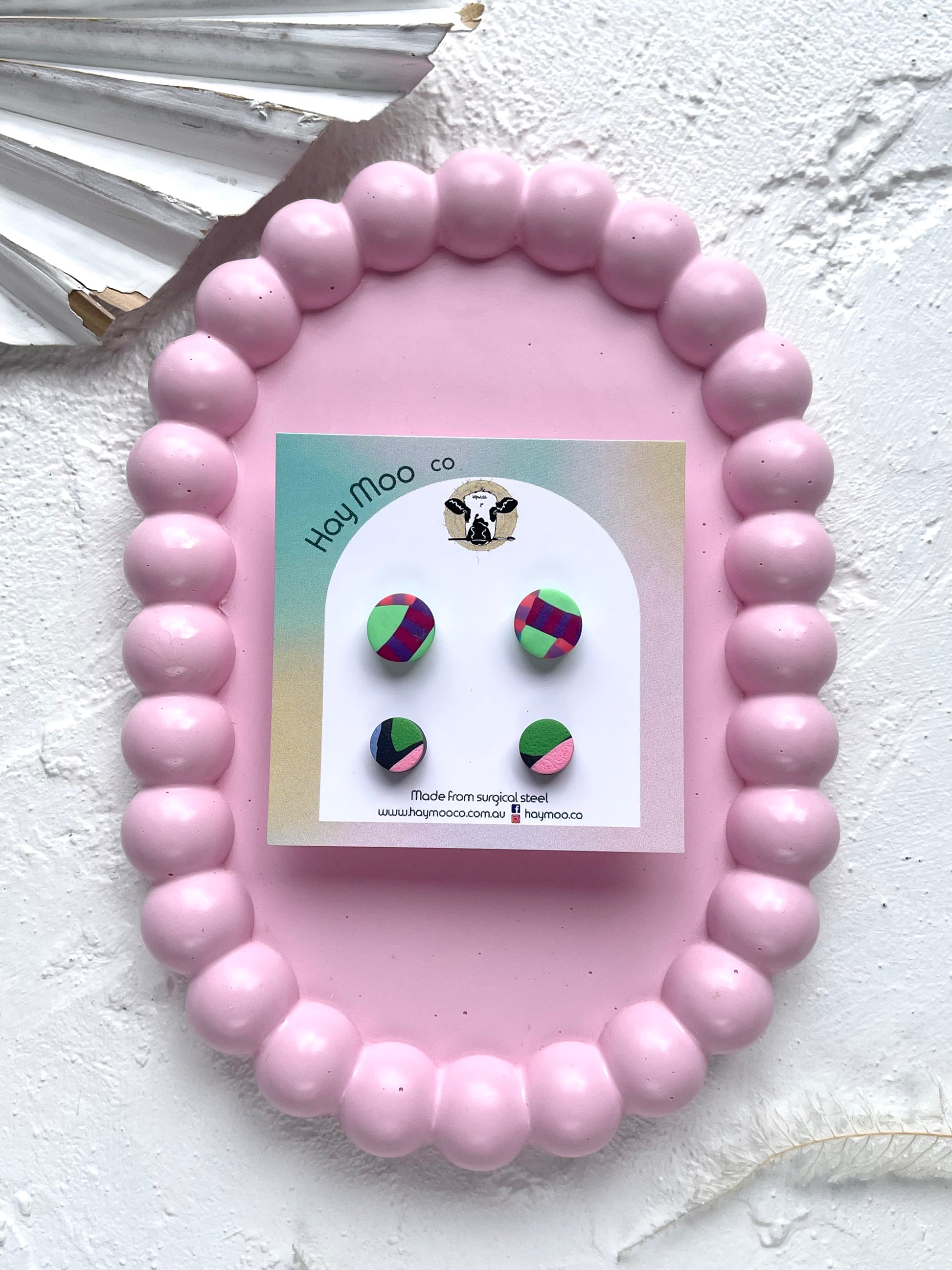 Handmade polymer clay earrings from the 'Stud Pack' range.