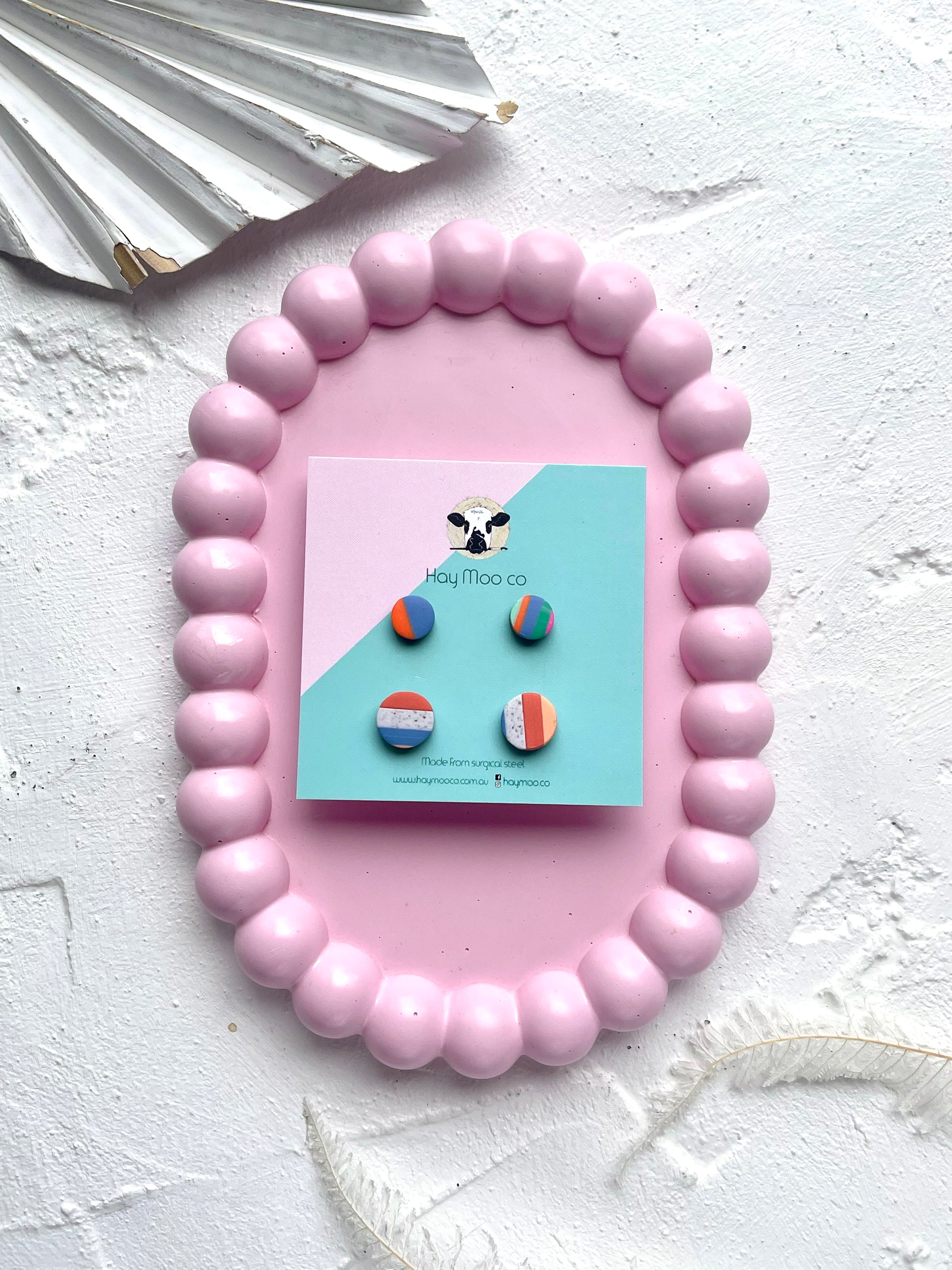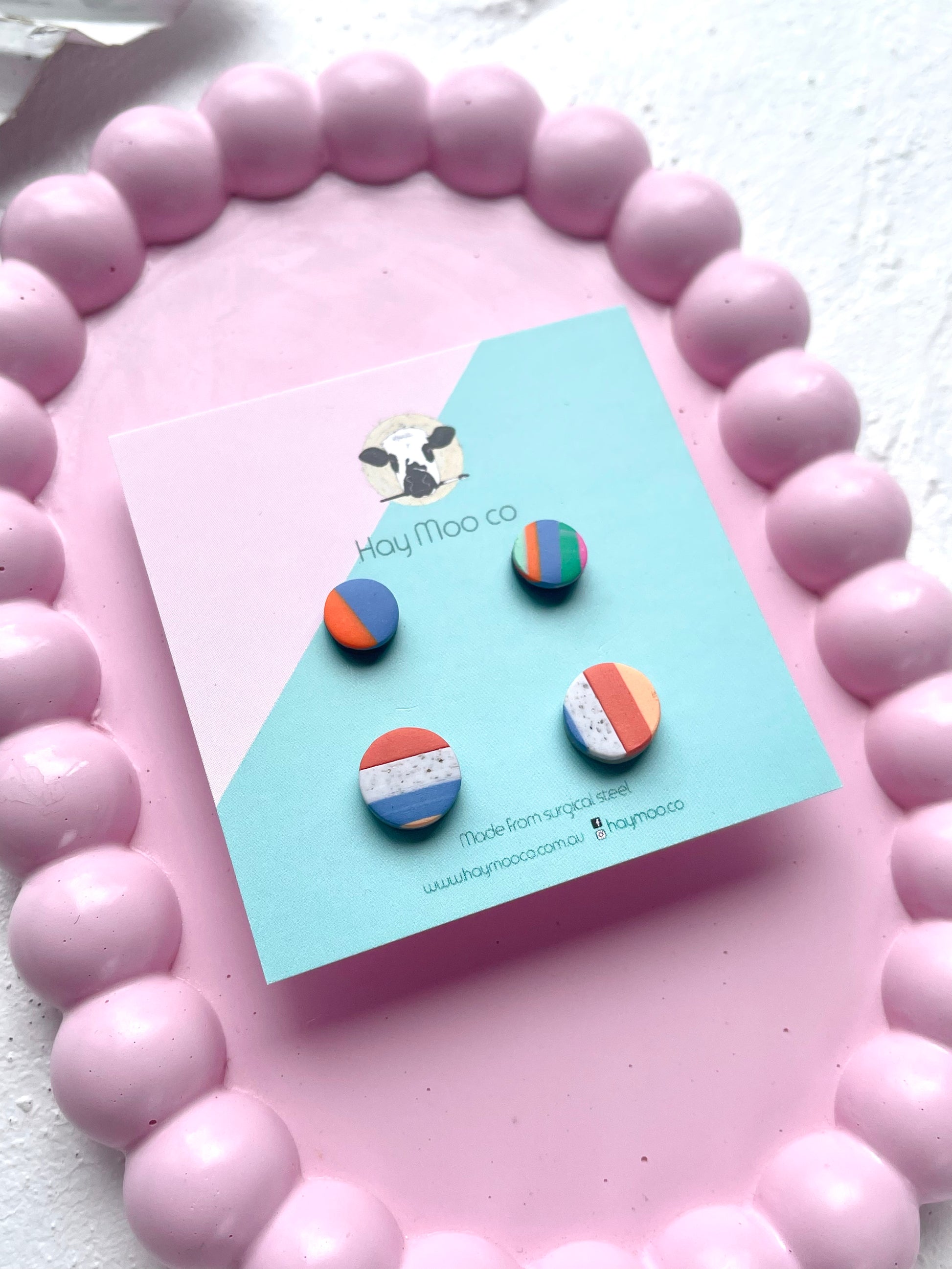 Handmade polymer clay earrings from the 'Stud Pack' range.