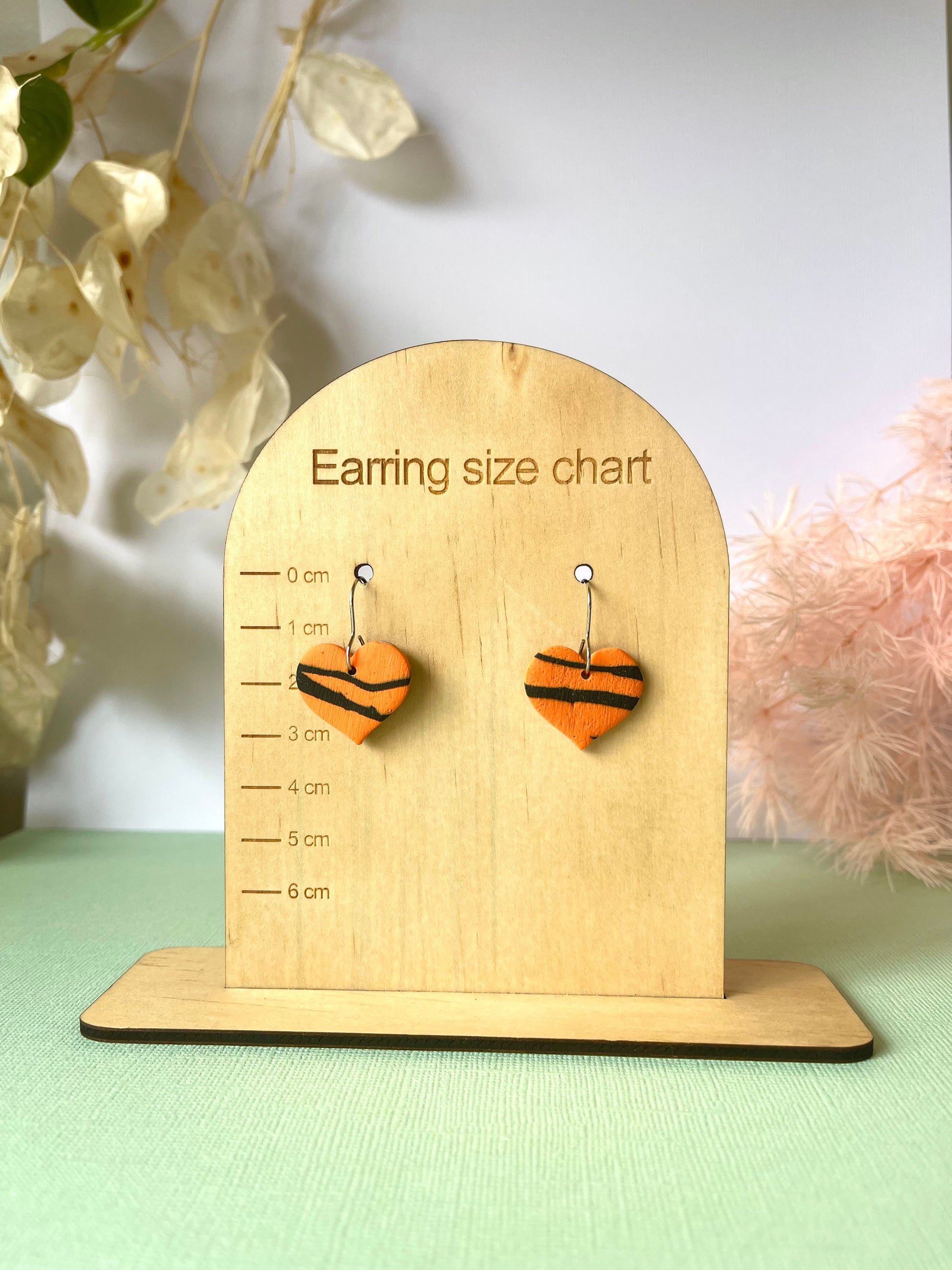 These handmade Tiger Heart Dangle Earrings will add a touch of style to any outfit. Crafted with a unique tiger pattern in a small heart shape, they'll be the perfect showstopper for any occasion.