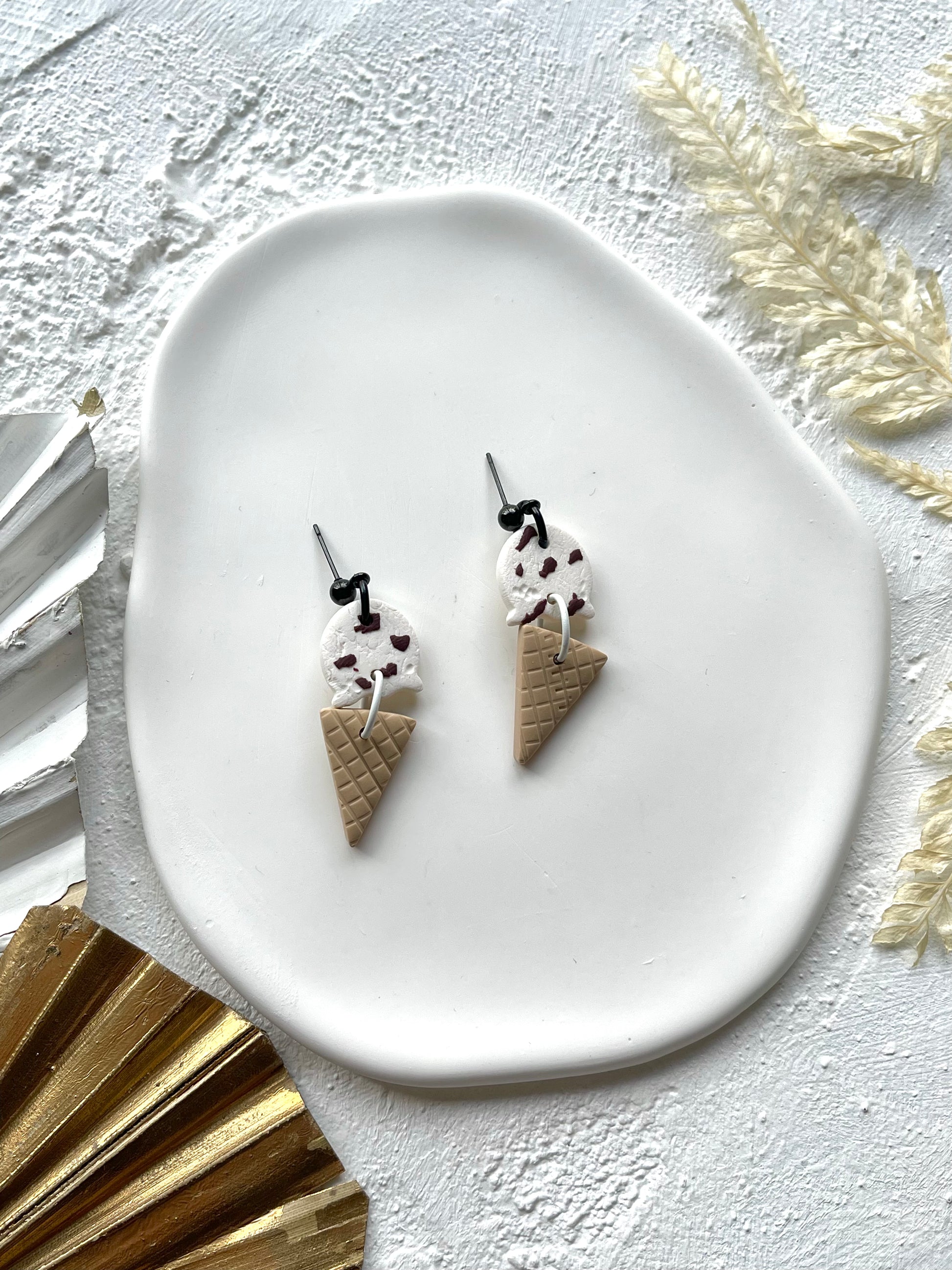 Handmade polymer clay earrings from the 'Vanilla Choc Chip Ice Cream Dangles' range.