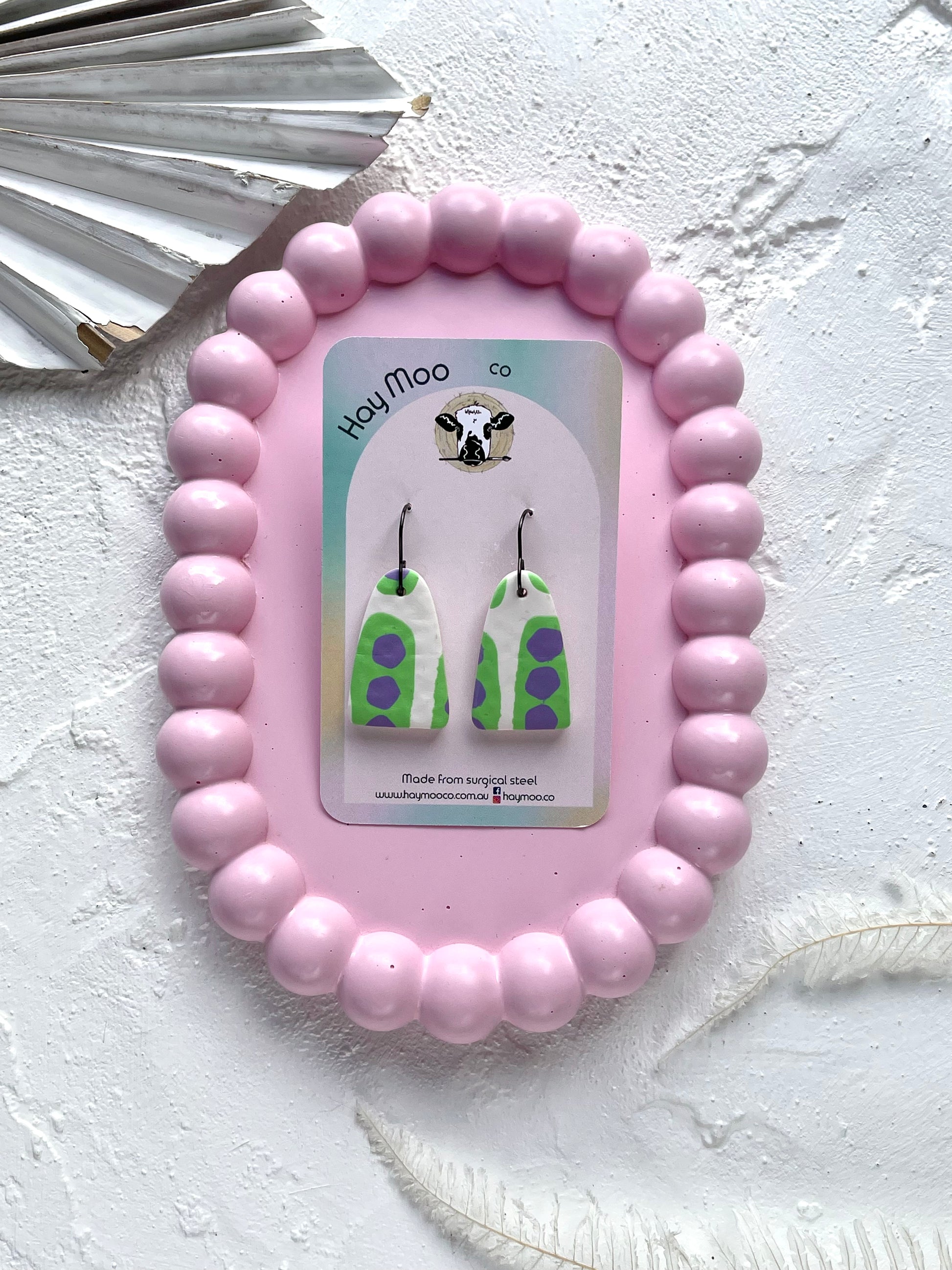 Handmade polymer clay earrings from the 'Violet Bloom' range.