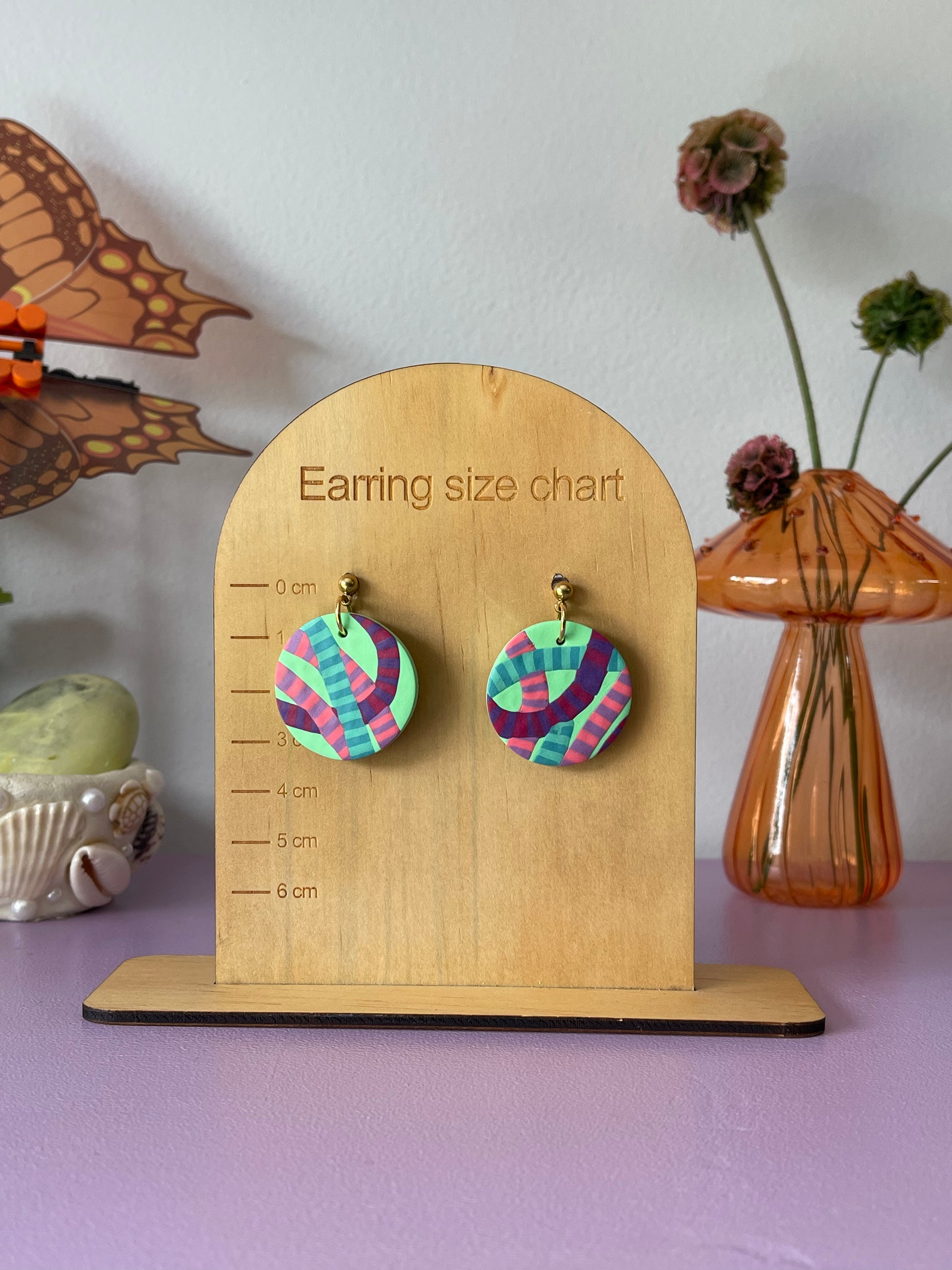 Polymer clay earrings are very light but must be treated with care, as they are wearable art!